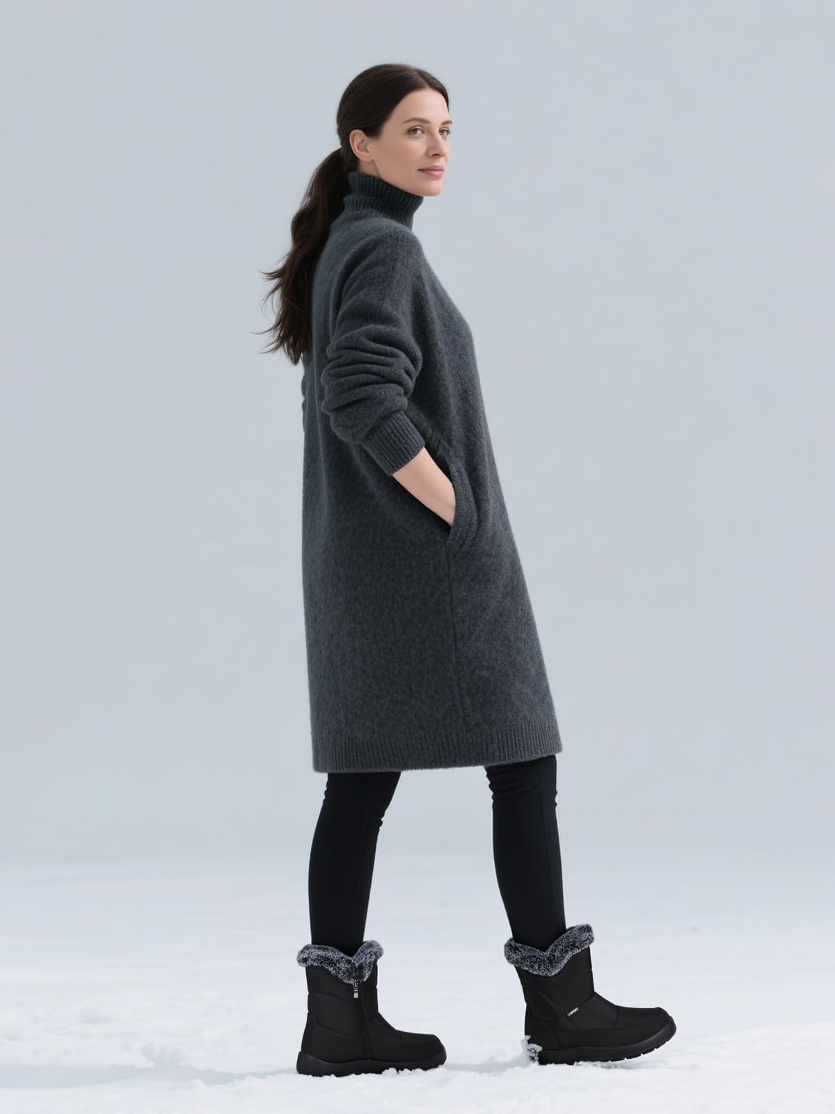 SHIBEVER Women's Snow Boots Winter: Waterproof Fur Lined Anti-Slip Ankle Booties Outdoor Comfortable Furry Women Snow Boot Black Size 7