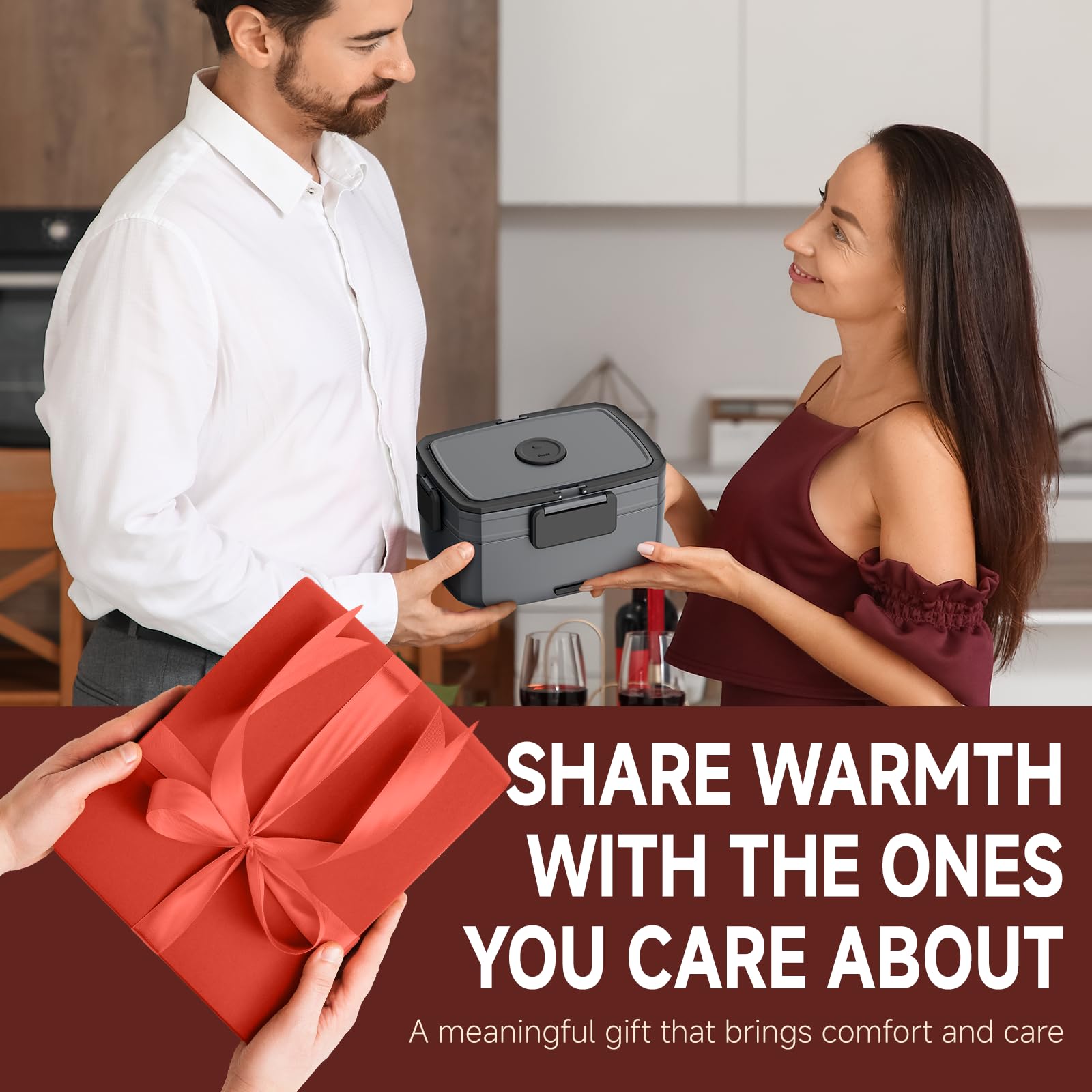 Sitlais Electric Heated Lunch Box for Men - 3 Liters Double Layer Portable Food Warmer for Car Truck 90 W Self Heating Lunch Box for Adults Food Heater for Work Travel Camping lonchera,Dark Grey