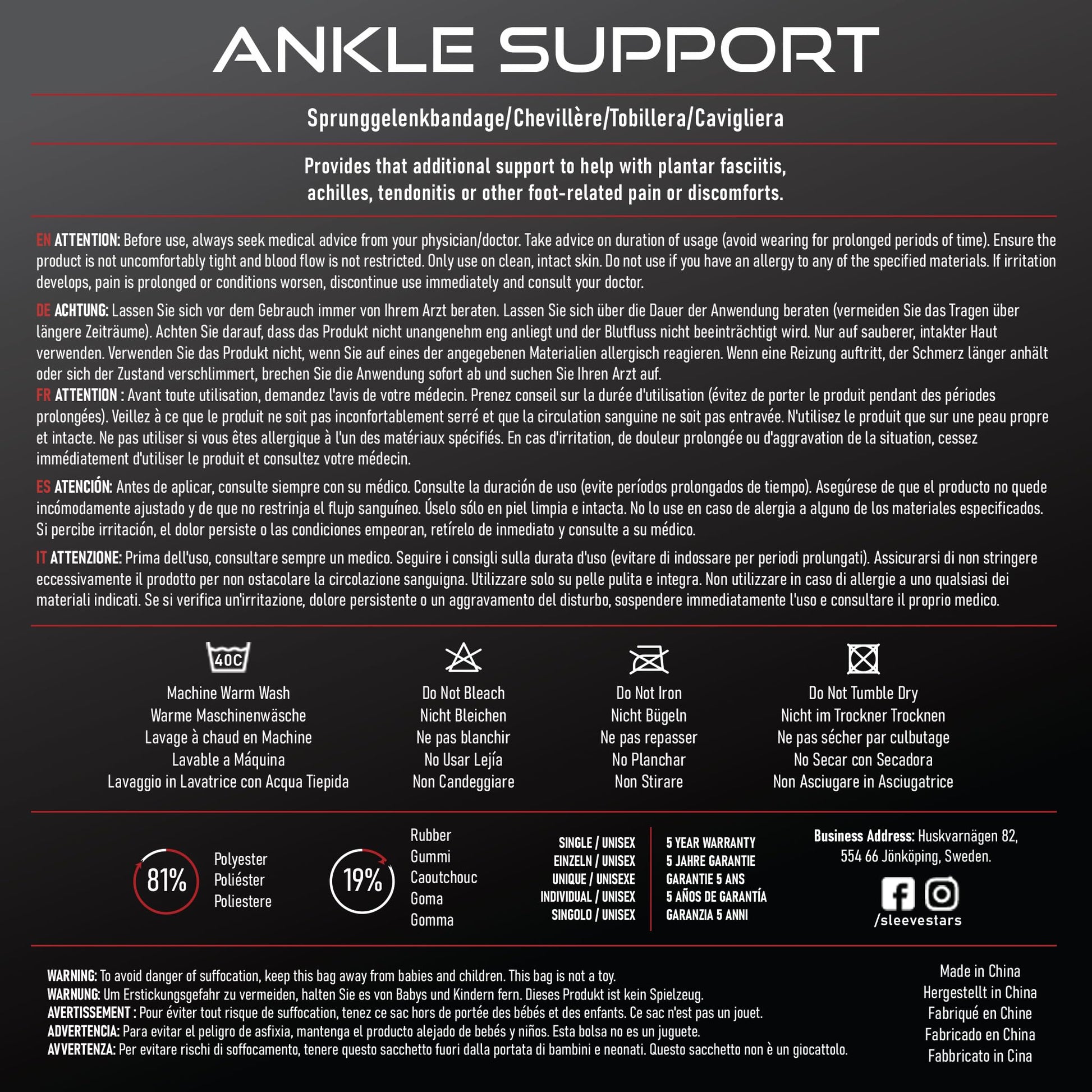Sleeve Stars Ankle Brace for Sprained Ankle, Plantar Fasciitis Relief Ankle Support for Women, Ankle Compression Sleeve w/ Strap (Single/Black)