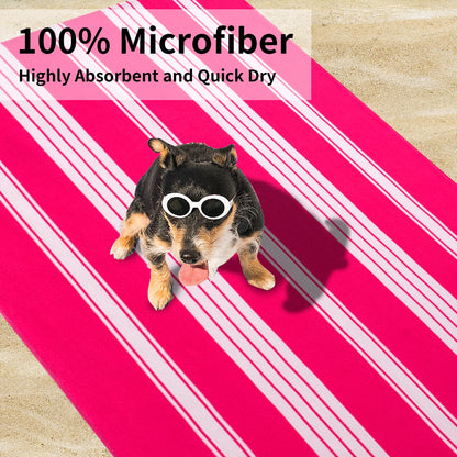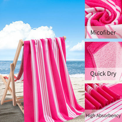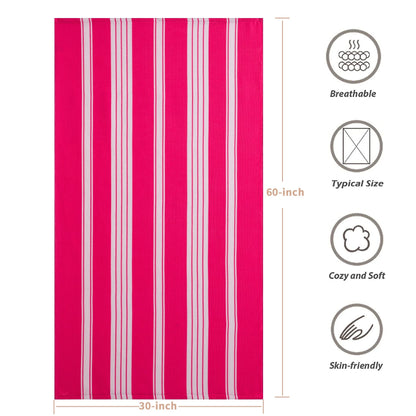 Smuge 2 Pack Oversized Cabana Stripe Beach Towels, 60x30 inches Microfiber Outdoor Large Swim Towel for Adults (Rose Red)
