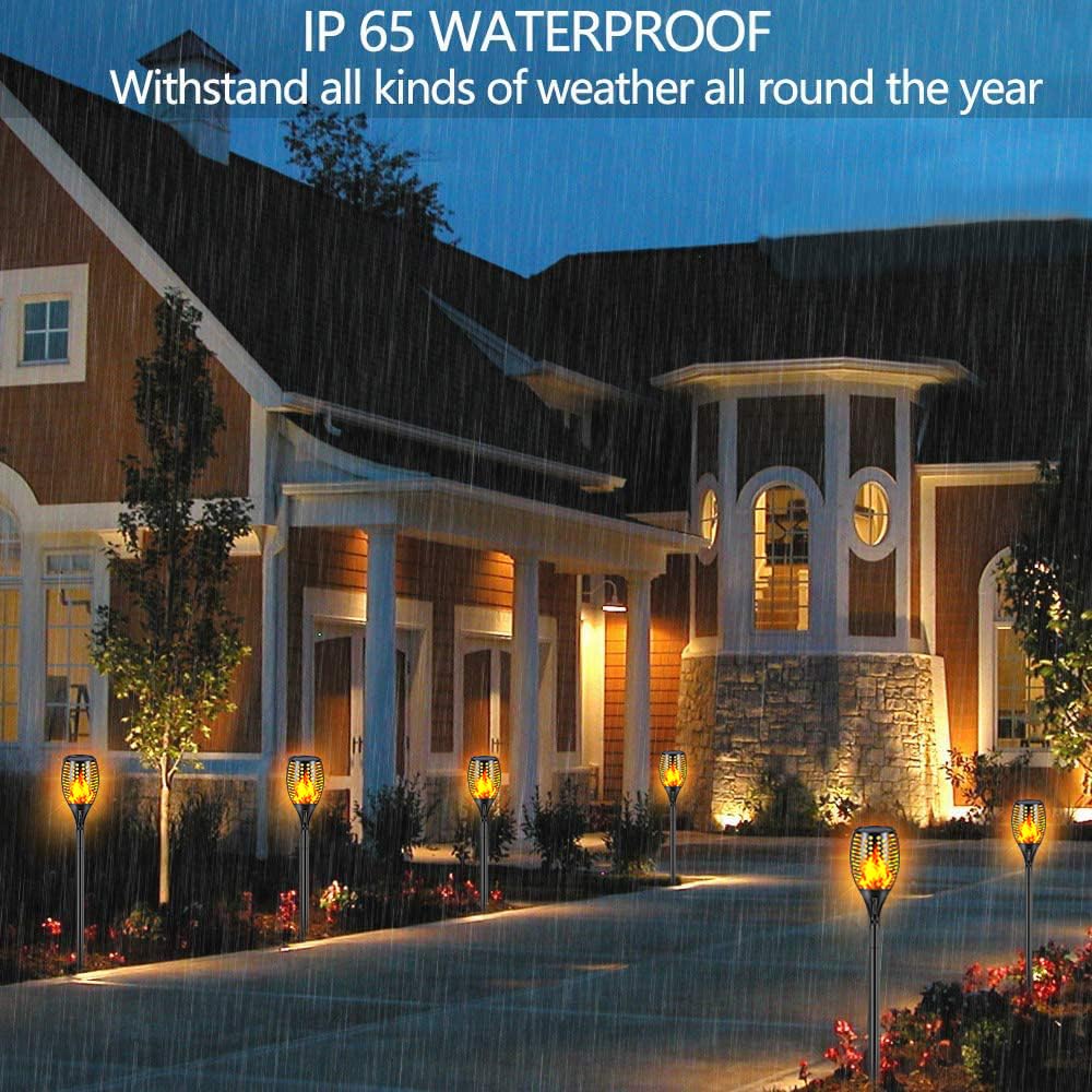 Solar Flame Light, 43’ Flashing Flame Flashlight Outdoor Waterproof Landscape Decorative Lighting Dusk to Dawn Auto On/Off Safety Flame Lights for Patio Garden Path Driveway 4 packs (Round hole flame)