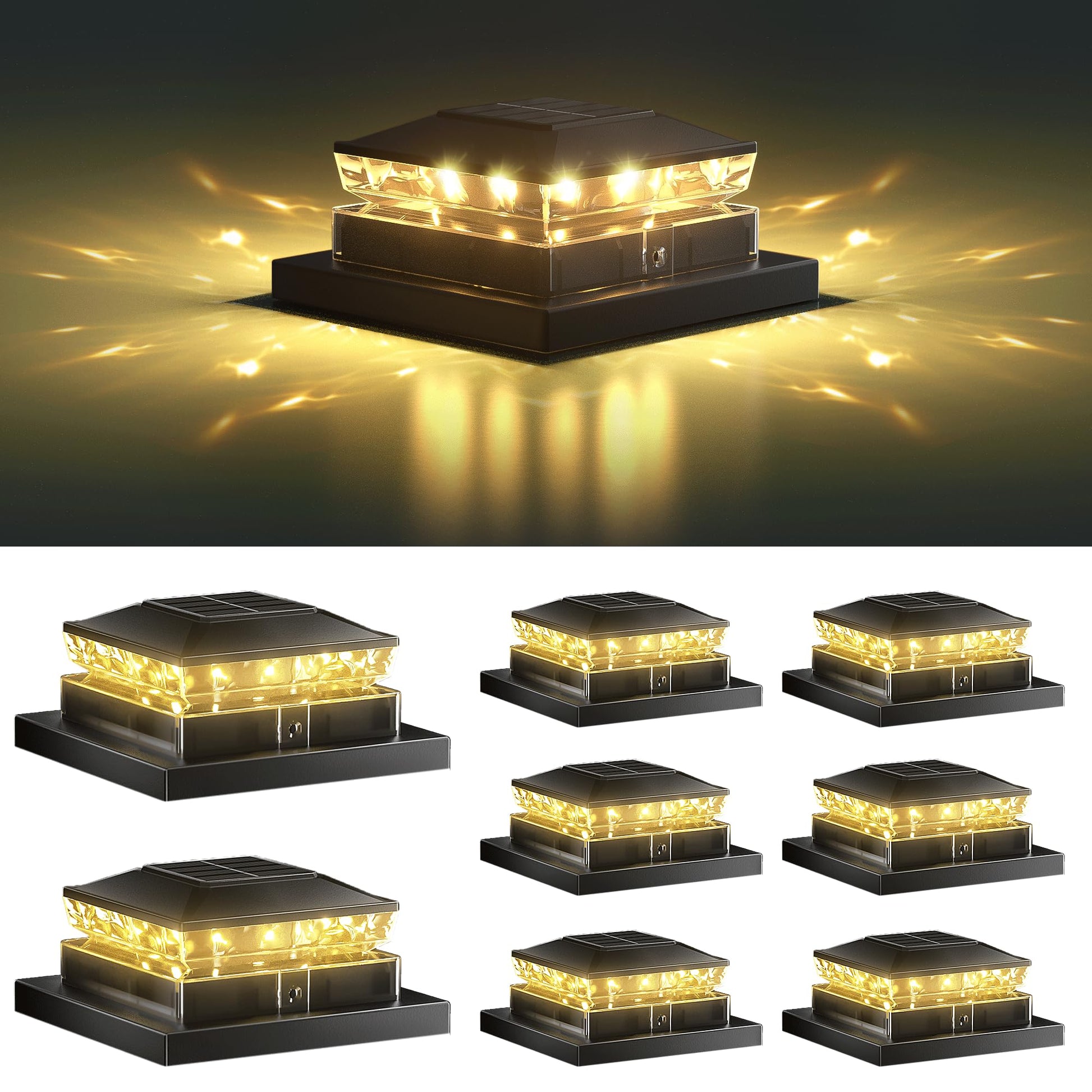 Solar Post Cap Light 8 Packs, Waterproof Solar Powered Fence Light, 4x4 IP65 Black Outdoor Post Solar Lights for Deck Garden & Patio Lights for 3.5x3.5,4x4,5x5 Wood & Vinyl Posts Warm White Lighting