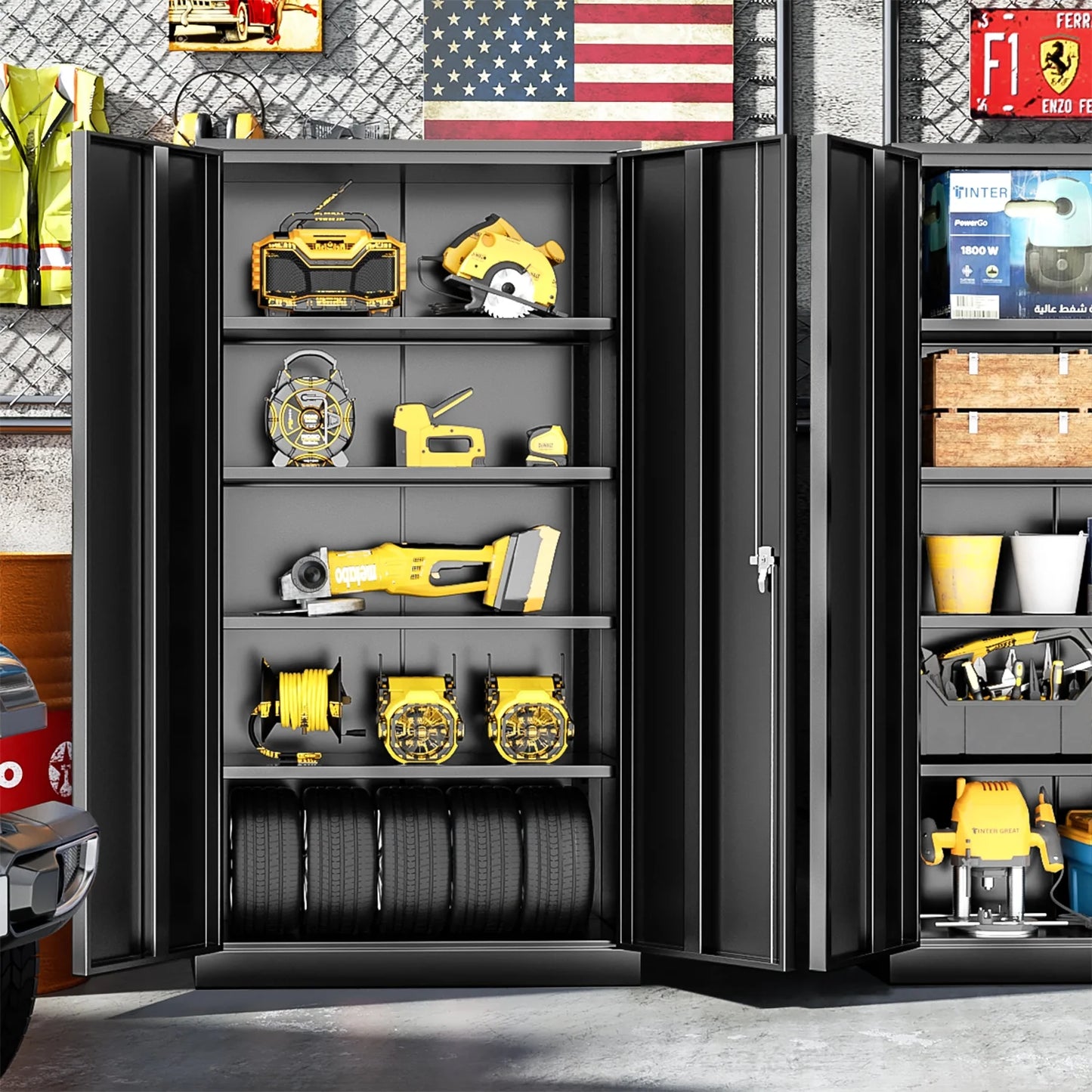 SOLAURA 71" Metal Garage Storage Cabinet with Locking Doors and Adjustable Shelves for Home, Office(Black)