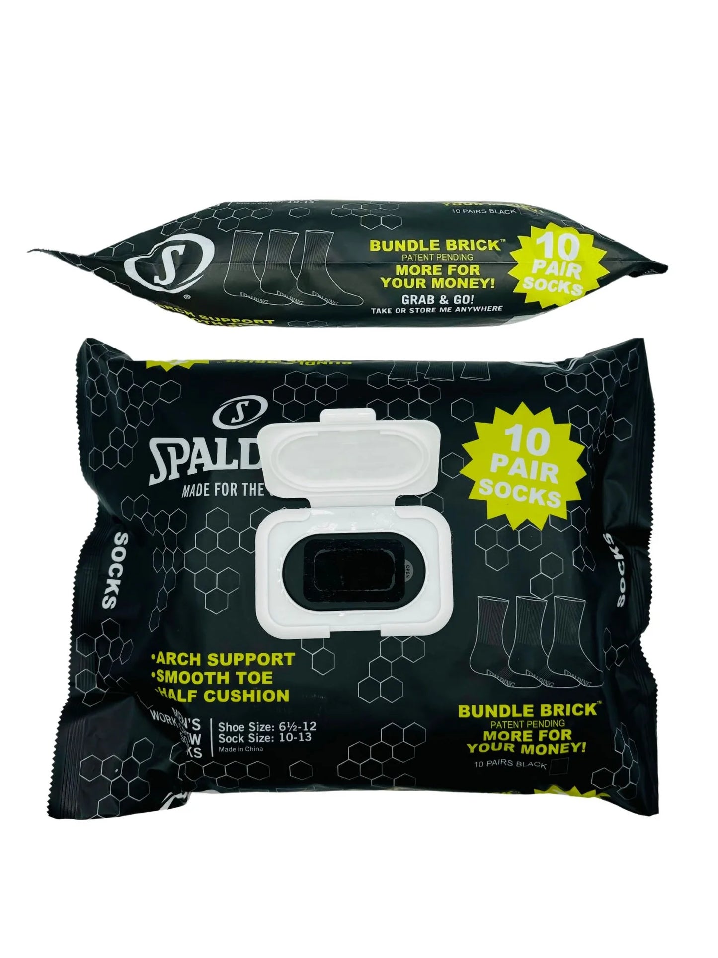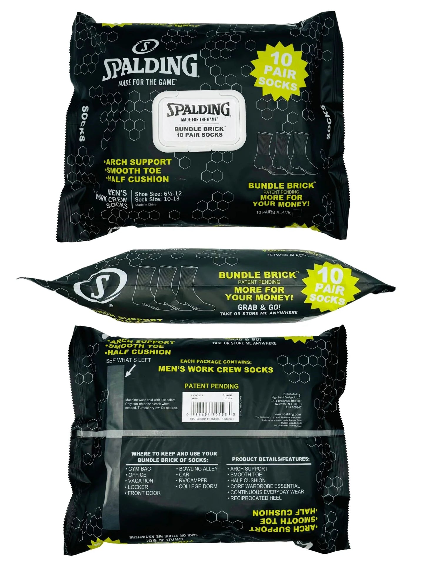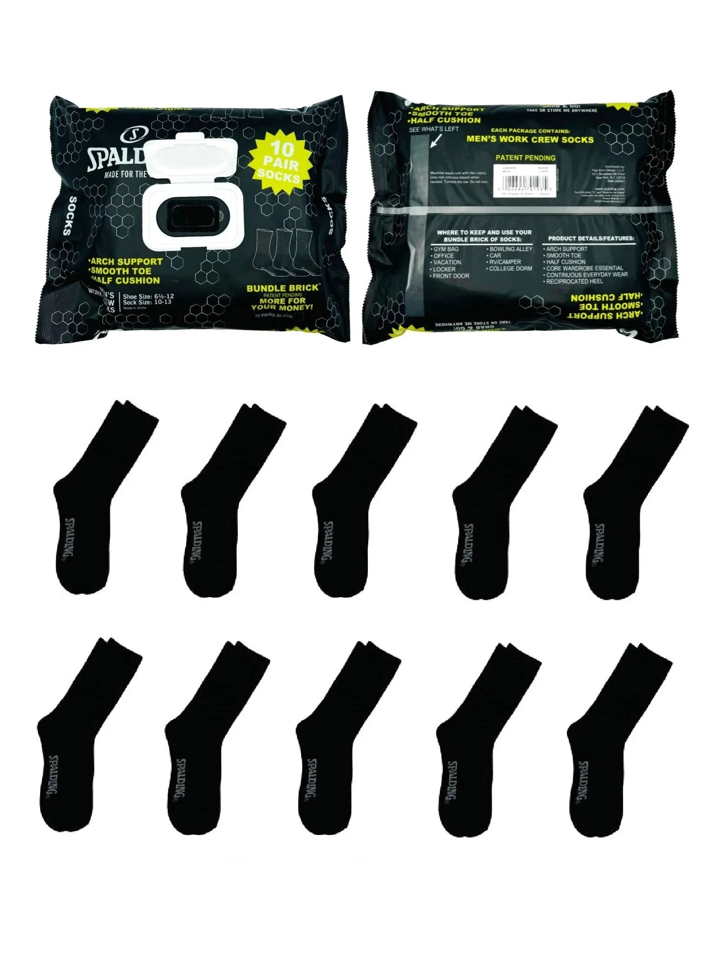 Spalding Men's Black Work Crew Socks, 10-Pack, Sizes 6.5-12