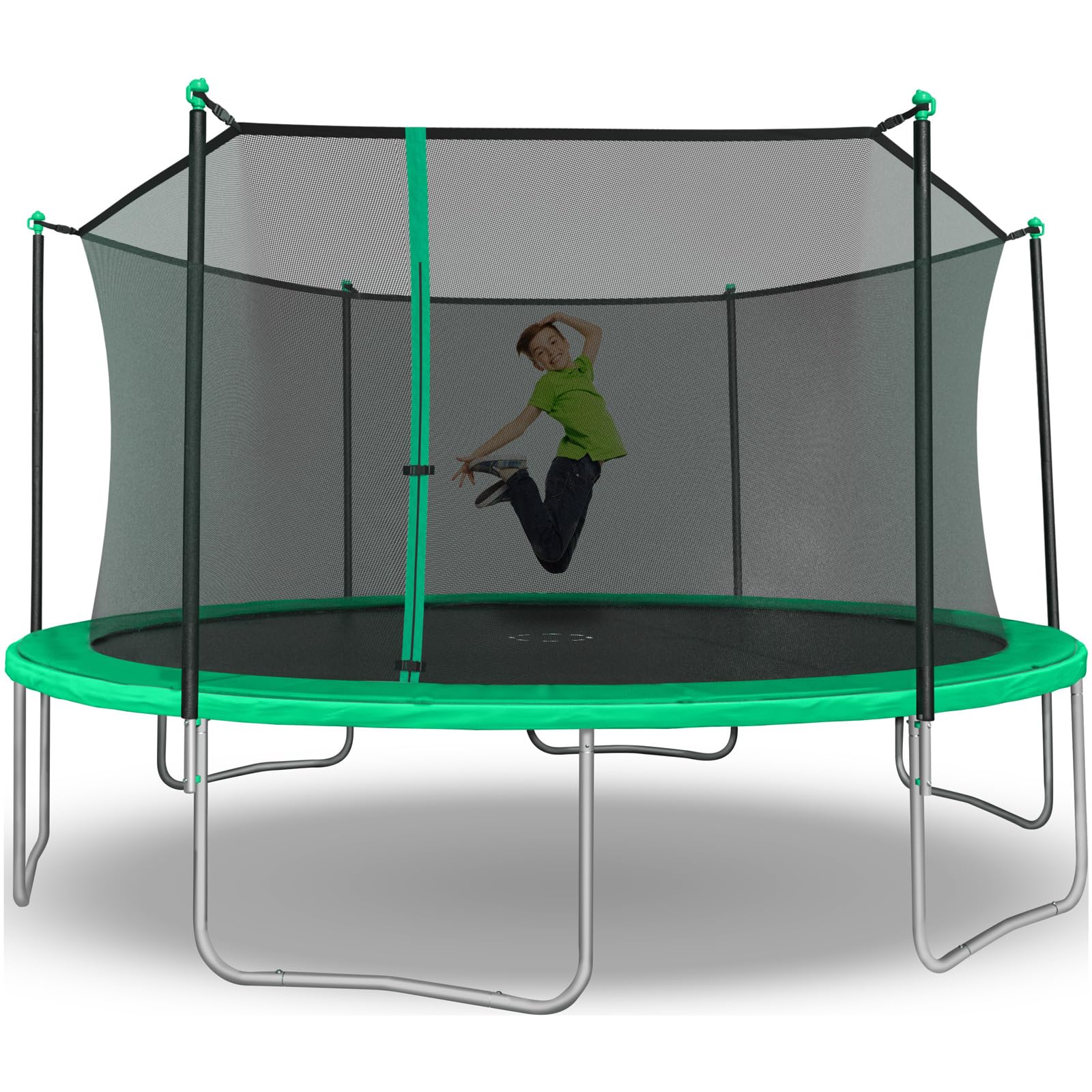 Sportspower Outdoor Kids Trampoline with Safety Enclosure Net and Foam Pad, 15FT Round - Green