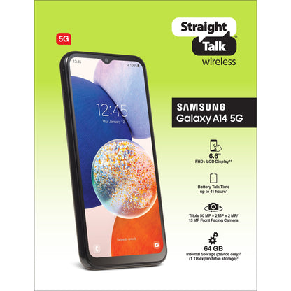 Straight Talk Samsung Galaxy A14, 64GB, Black - Prepaid Smartphone [Locked to Straight Talk]