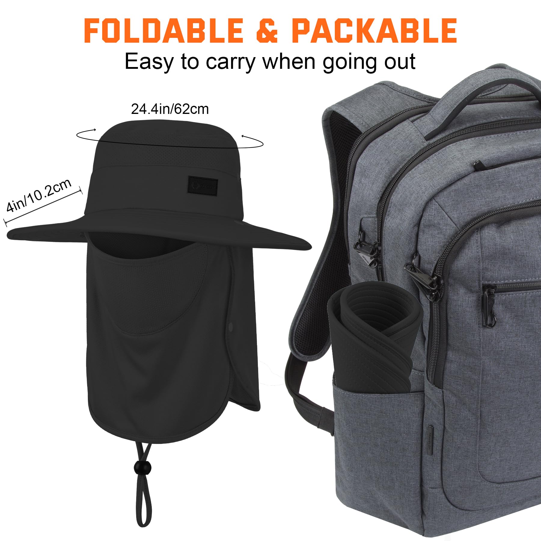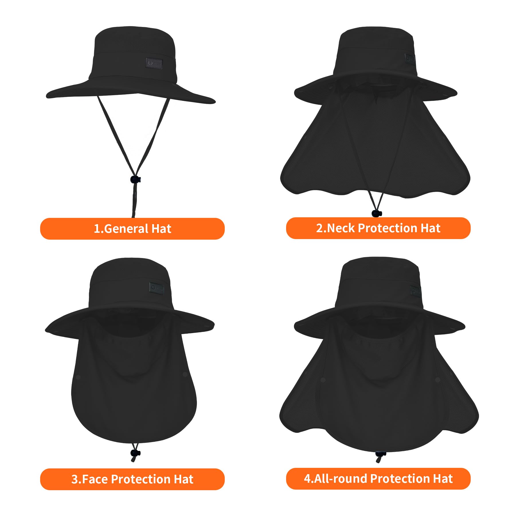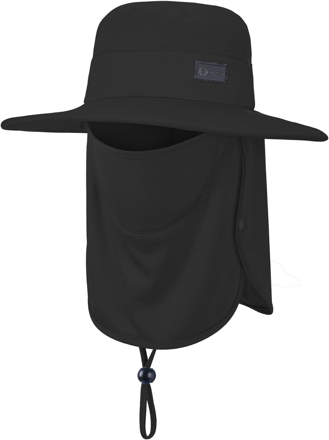Sukeen Fishing Hat for Men Women, Wide Brim Outdoor UPF 50+ Sun Protection with Detachable Neck Flap and Face Mask (Black)