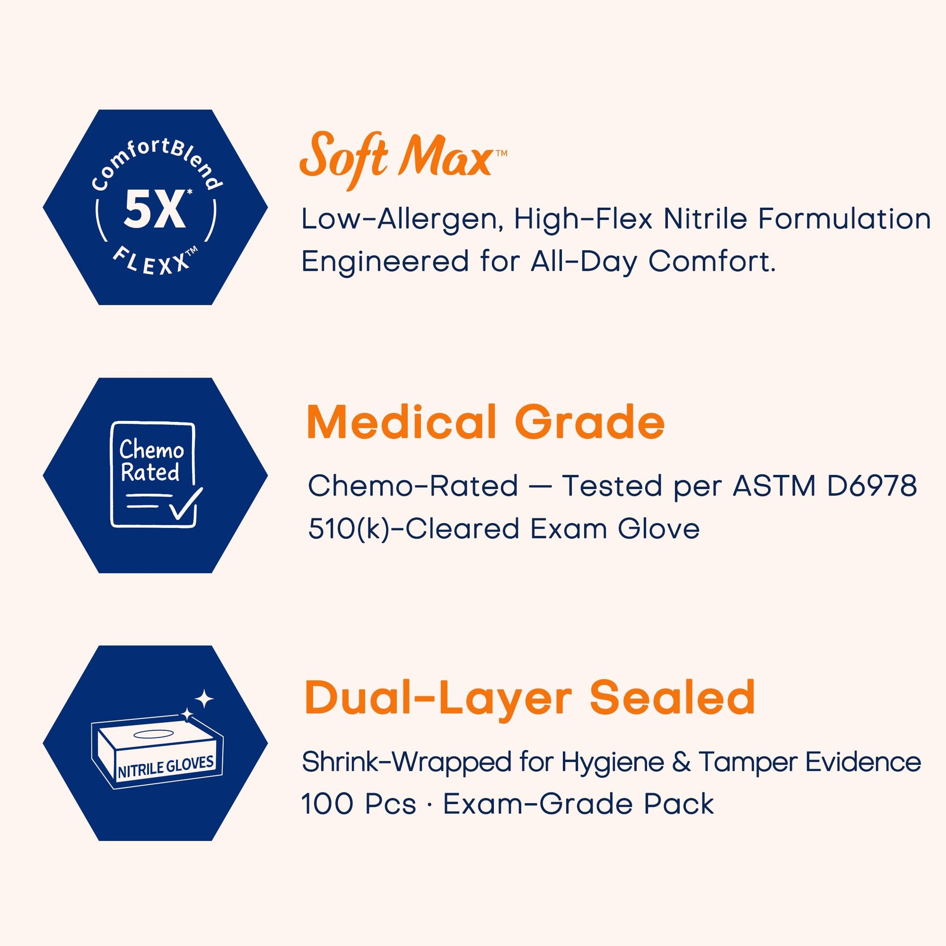 Supmedic Medical Nitrile Exam Gloves, Latex-Free, Powder-Free, Food Safe, Cooking Food Prep, Disposable Gloves, Blue, 100 Pcs (Large)
