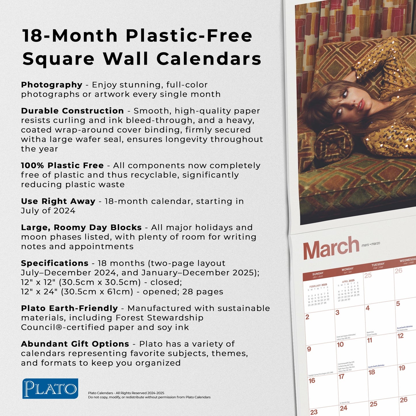 Taylor Swift OFFICIAL | 2025 12x24" (Hanging) 18 Month Wall Calendar | Jul '24 - Dec '25 | Plato