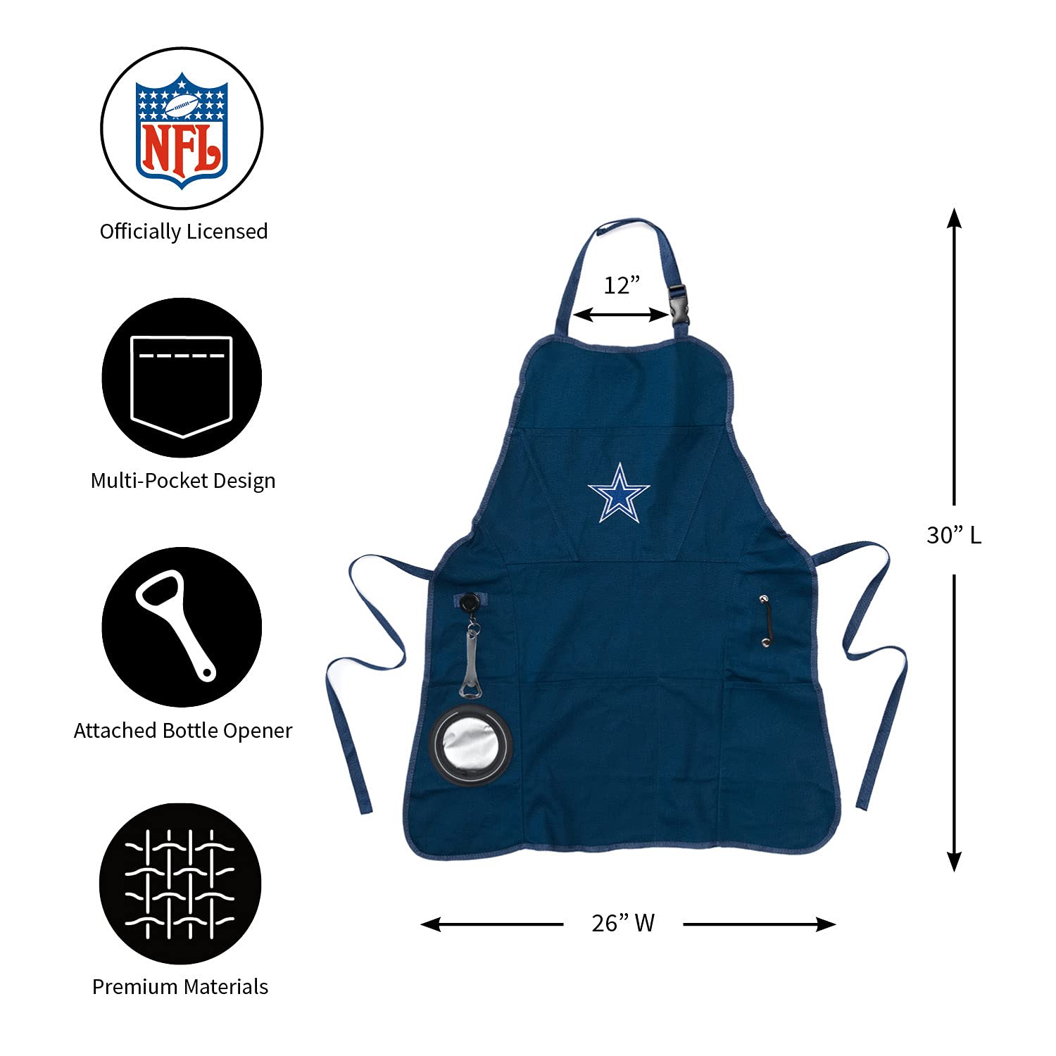 Team Sports America NFL Dallas Cowboys Ultimate Grilling Apron | Bottle Opener and Insulated Beverage Holder | Heavy Duty Durable Cotton Canvas 300 GSM | Machine Washable | Adjustable Straps