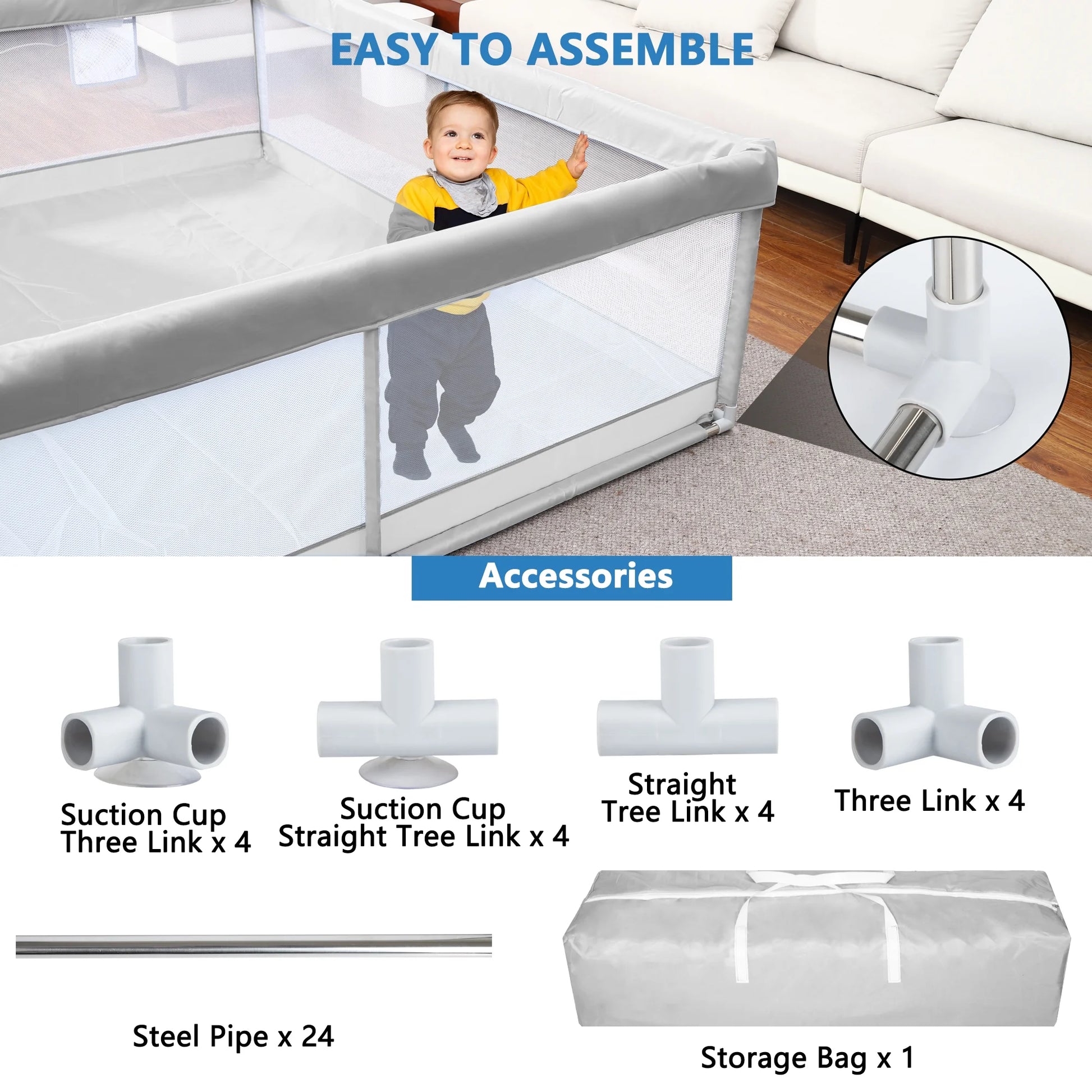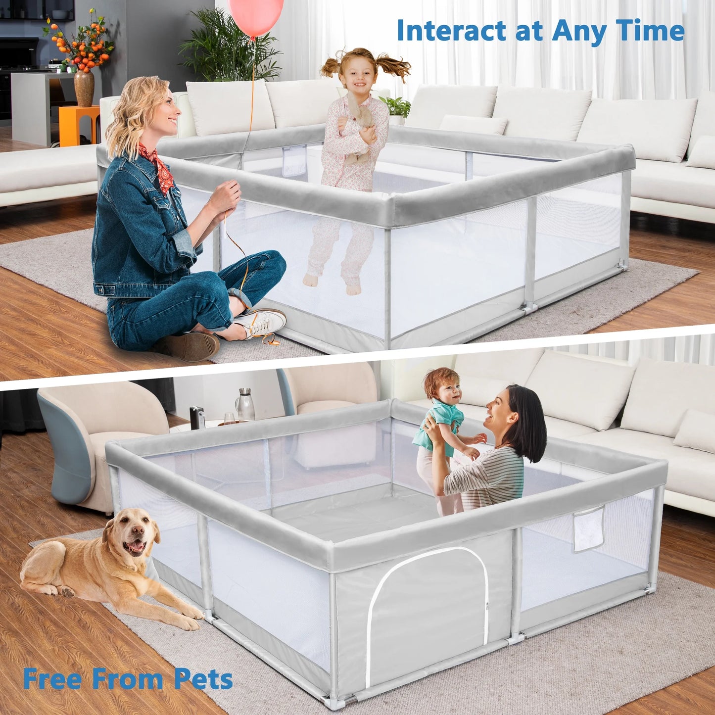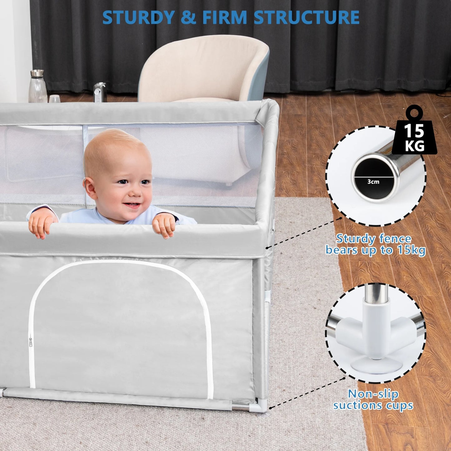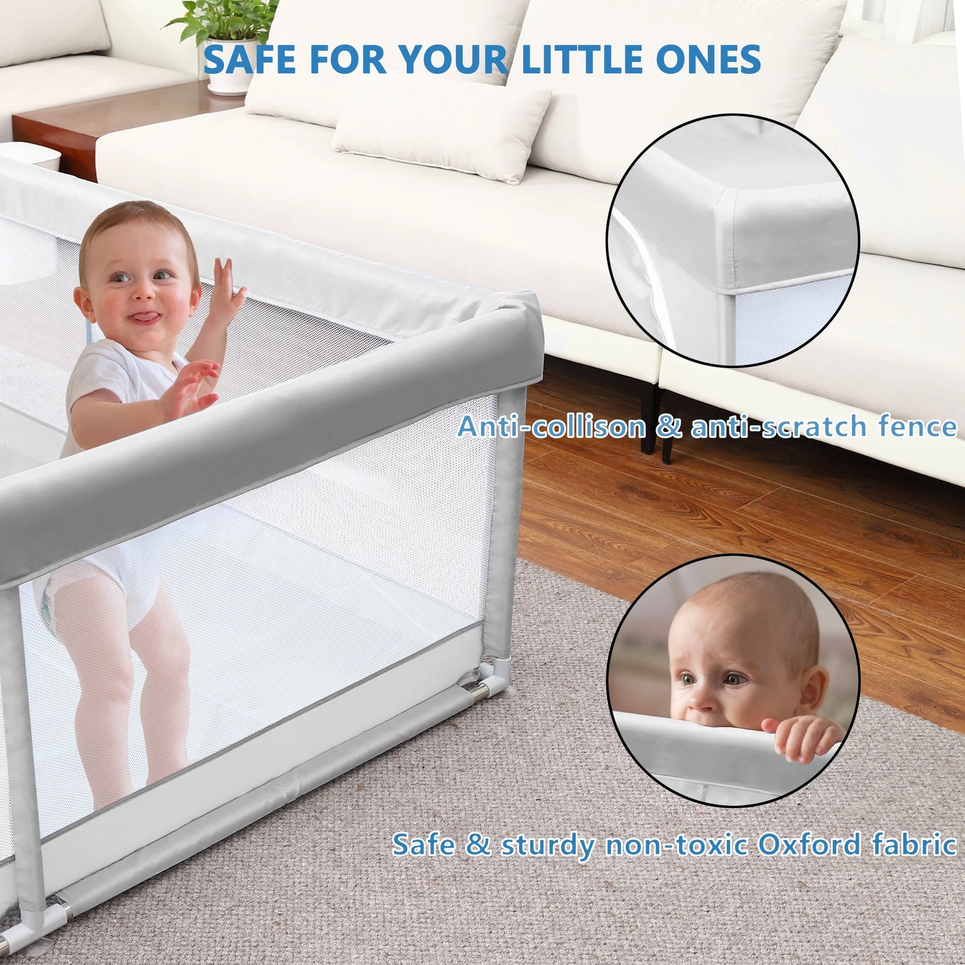 TEAYINGDE Baby Playpen Large Play Yard Fence for Toddlers,47"x47" Gray