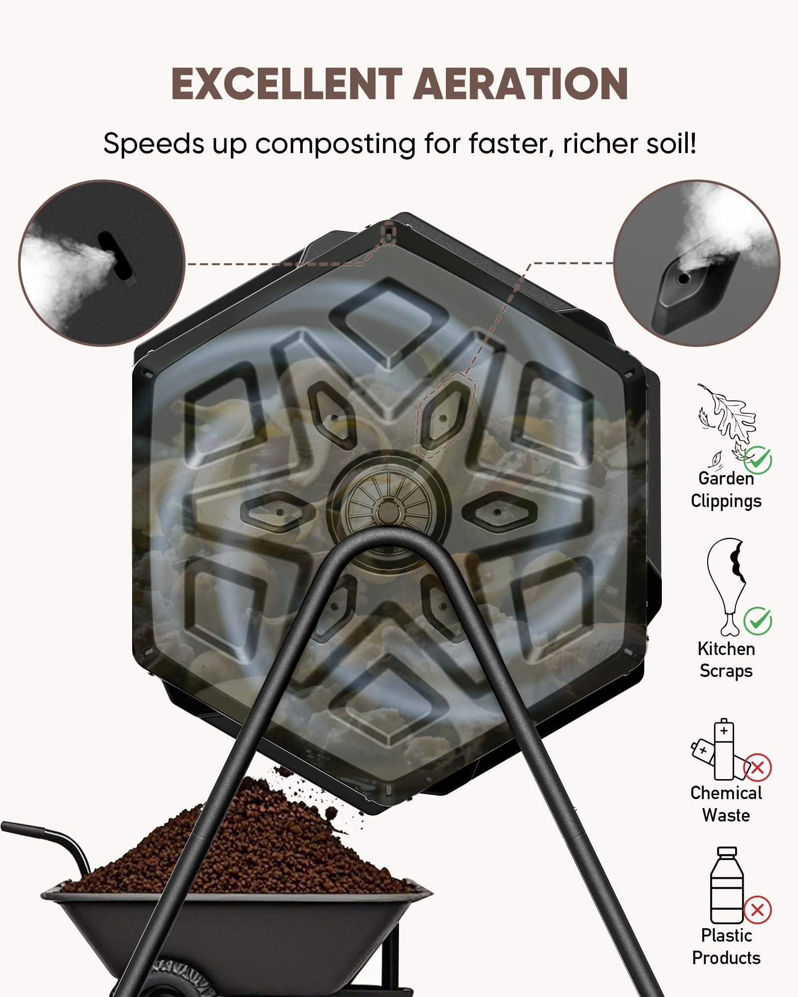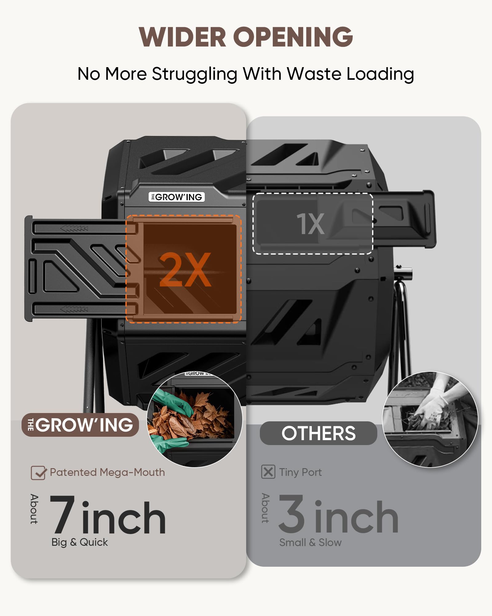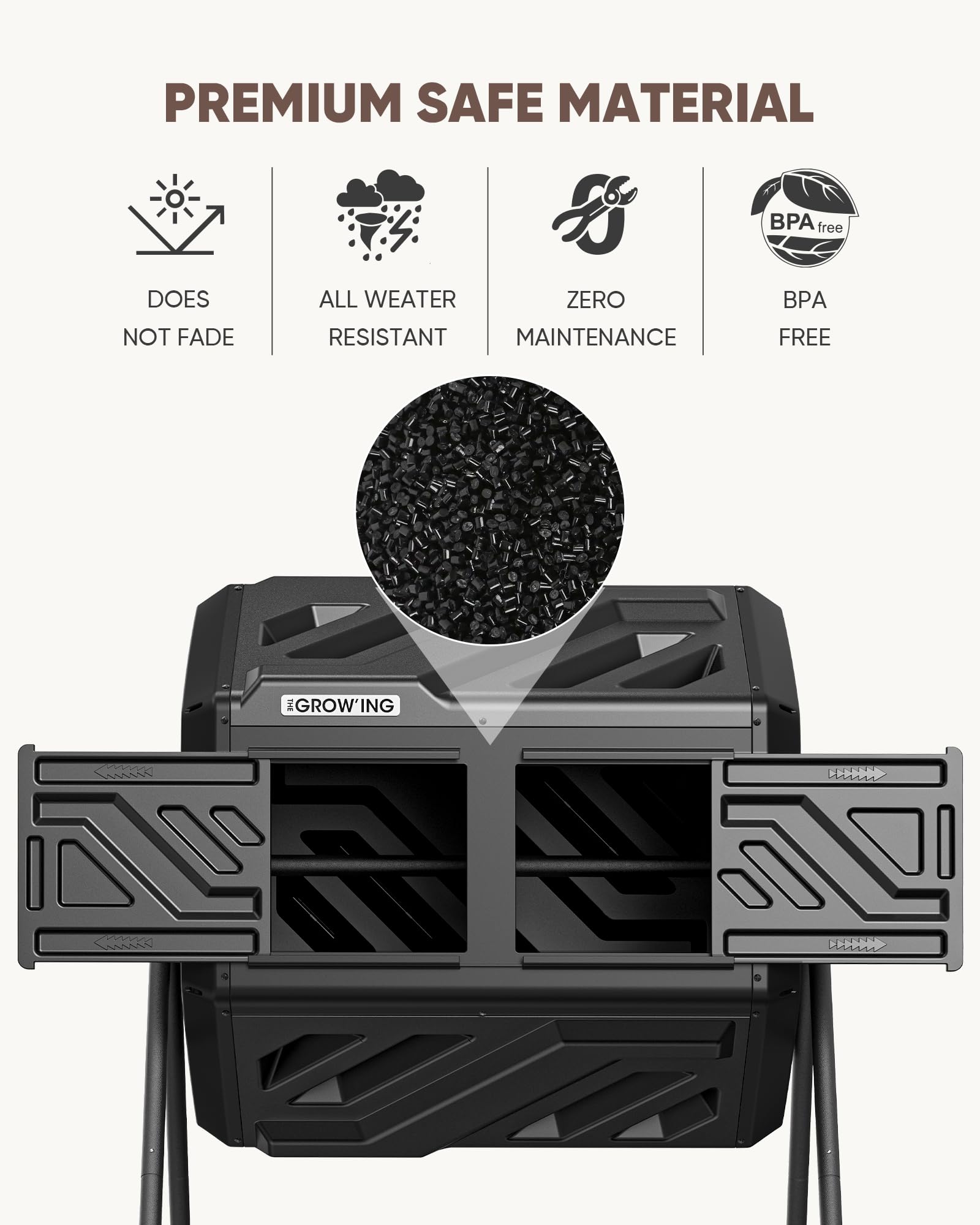 THEGROW'ING Updated 43 Gallon Compost Bin Outdoor, Fast Assemble Tumbling Composter, Dual Chamber Composter Tumbler, Rotating Compost Bin for Outside, Backyard, Garden and Yard, Black