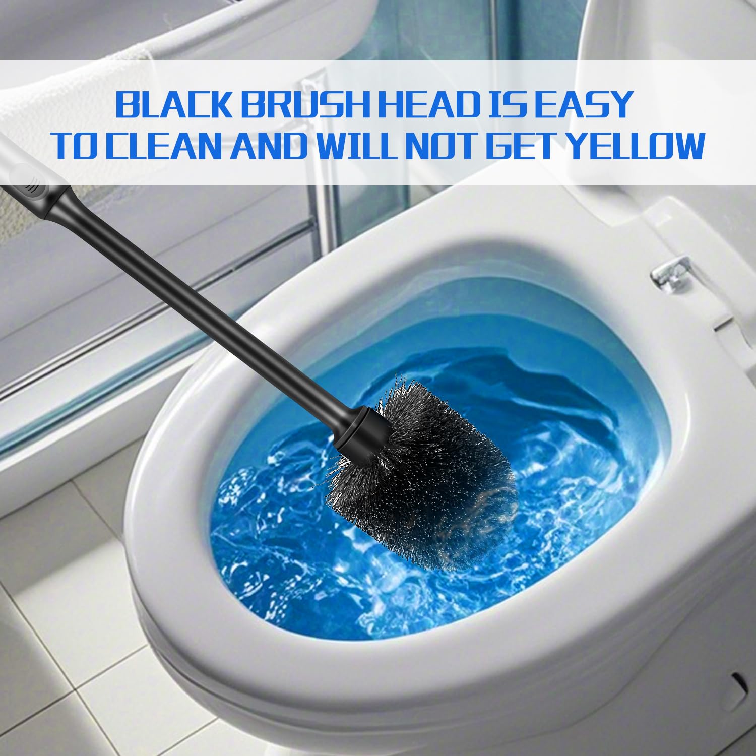 Toilet Brush and Holder 2 Pack with Long Handle - Non-Slip Grip Toilet Bowl Brush Set for Deep Cleaning Bathroom, Toilet Scrubber- Black