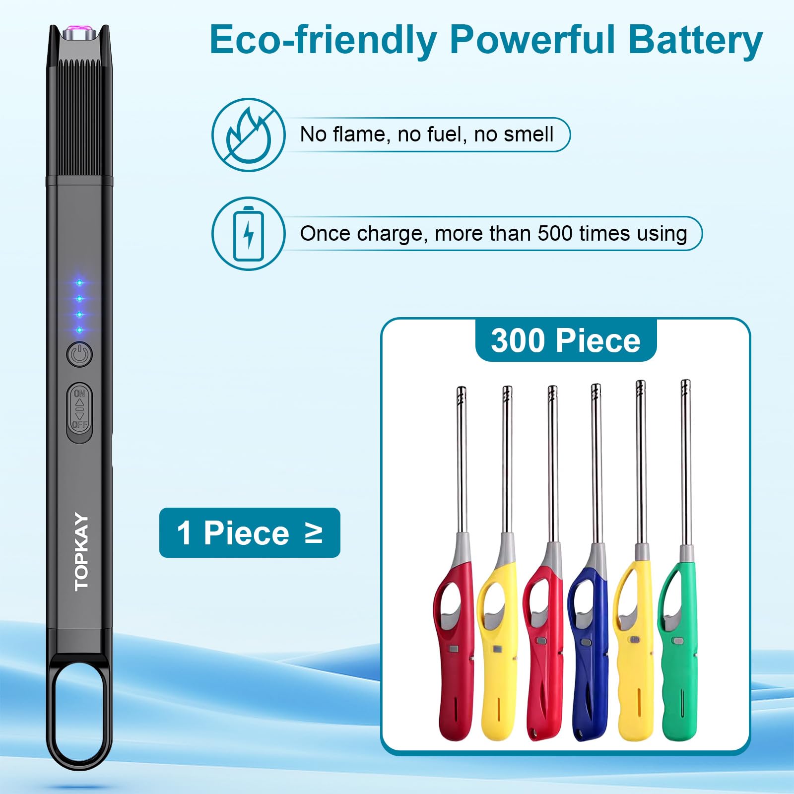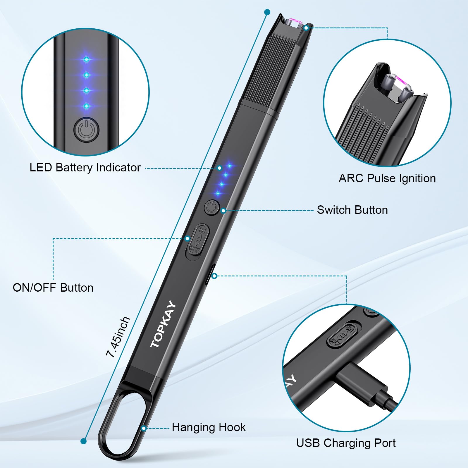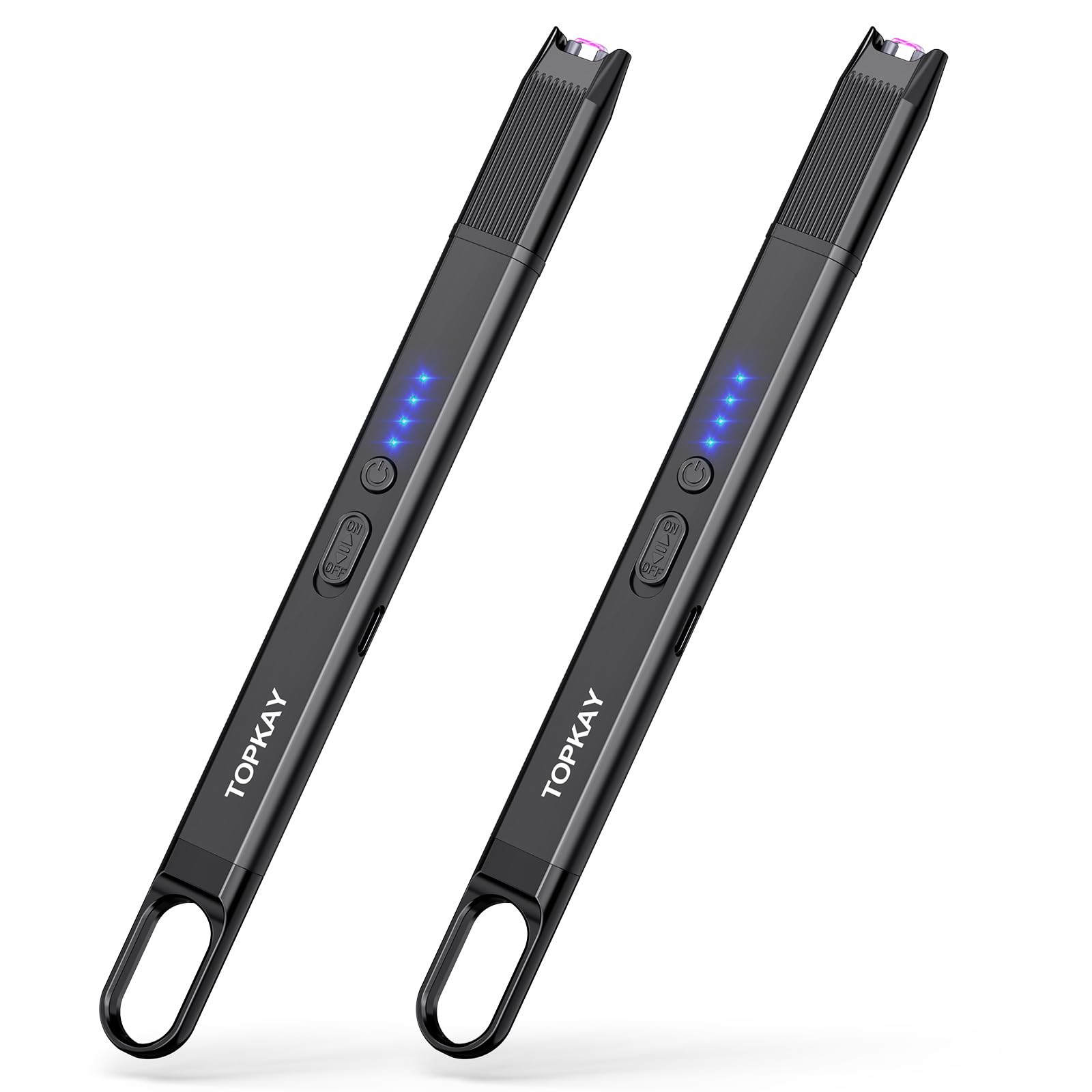 TOPKAY 2 Pack Electric Candle Lighter Windproof Flameless USB Rechargeable Plasma Arc Long Lighter for BBQ Grill Firework Kitchen Camping.