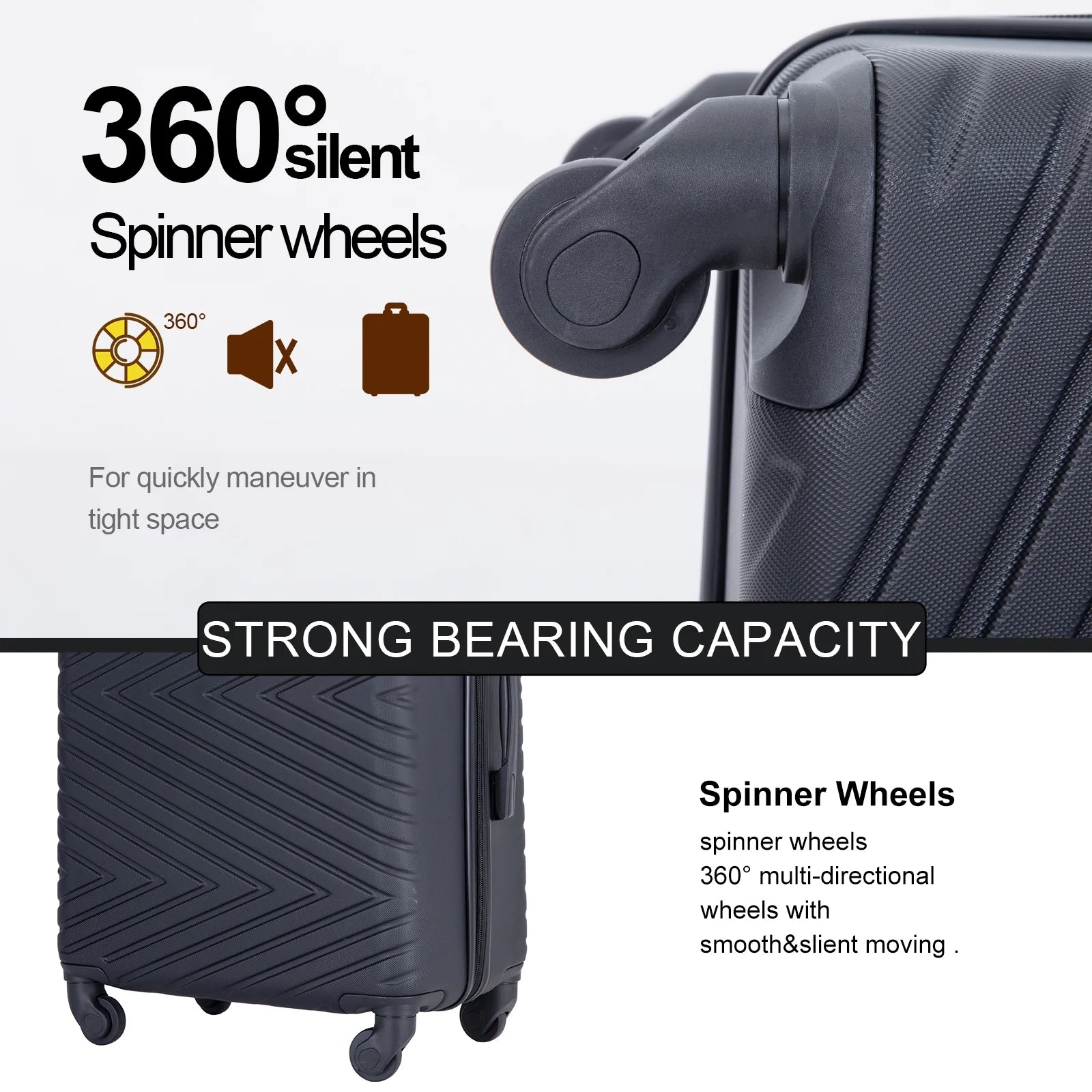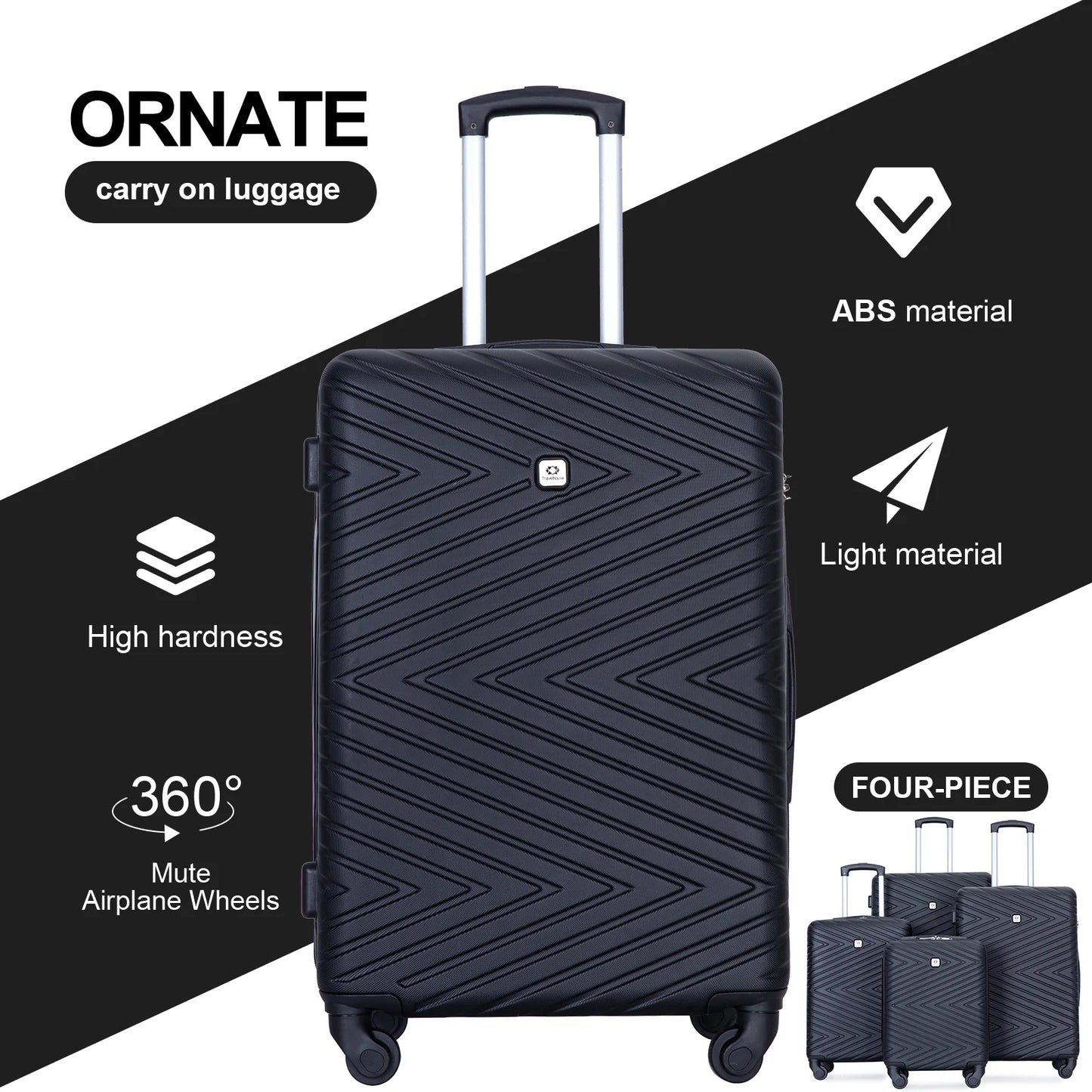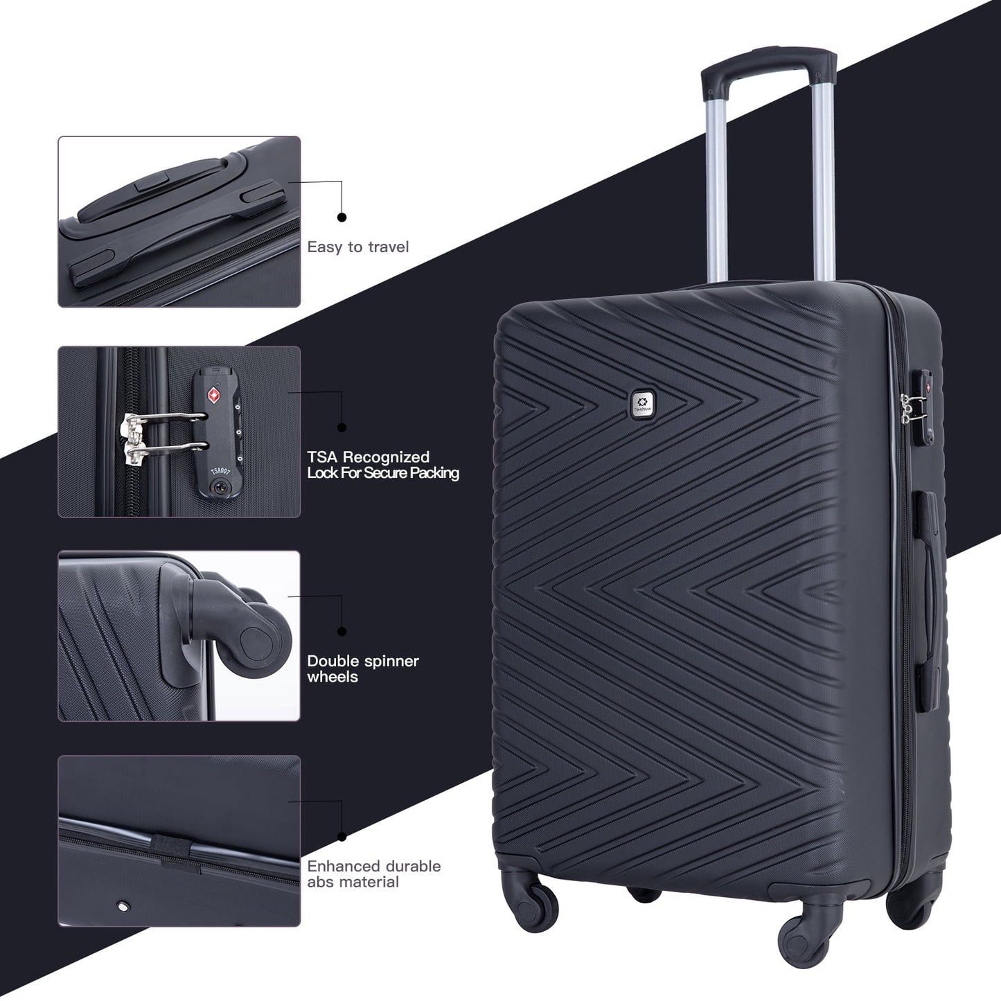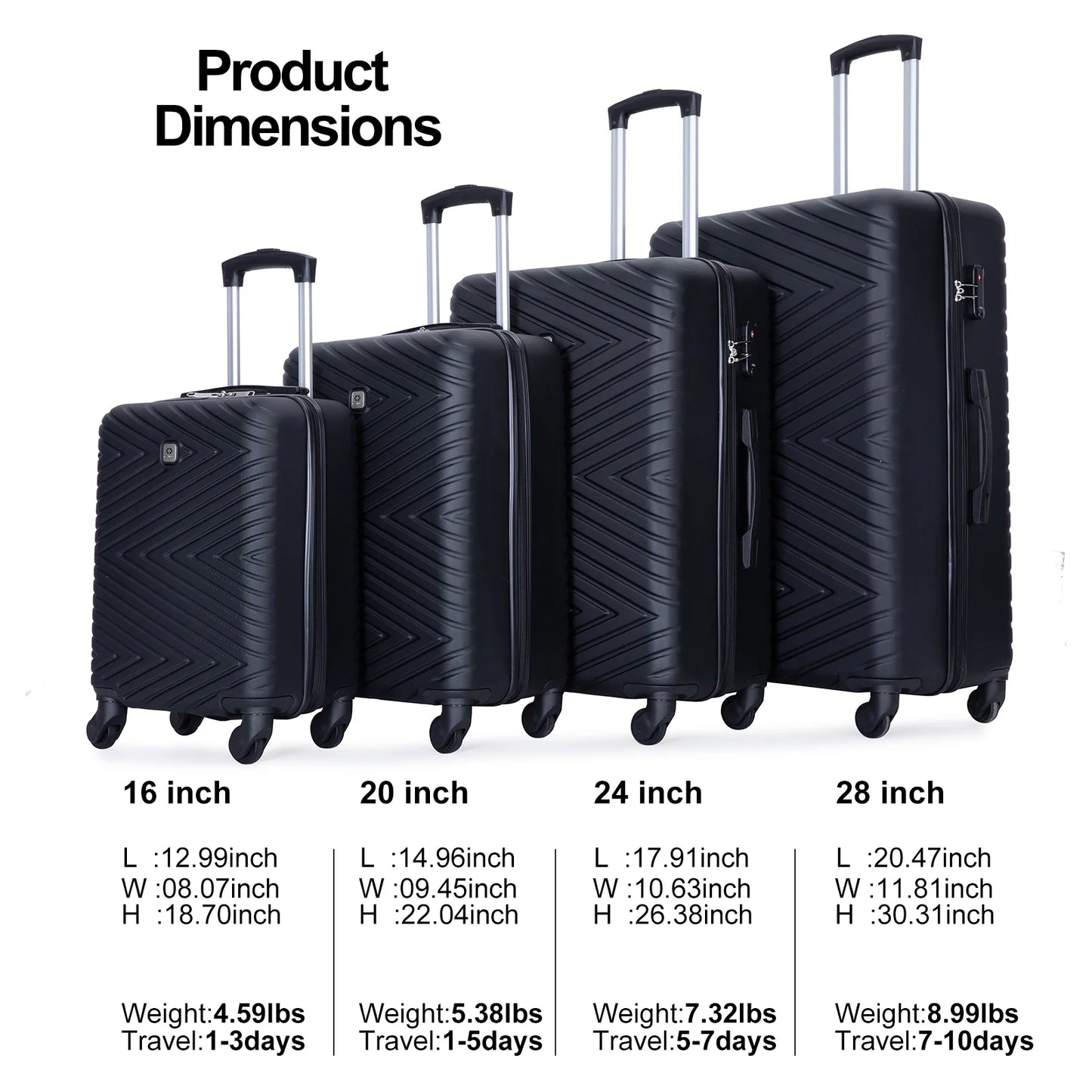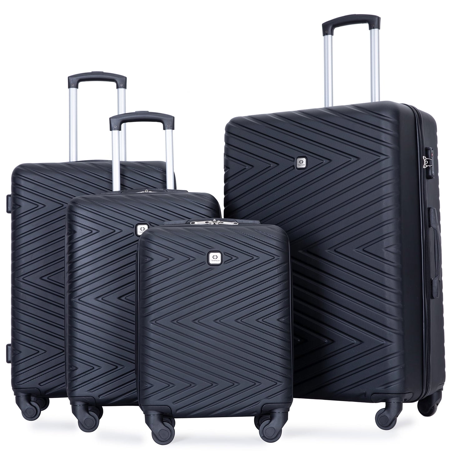 Travelhouse 4 Piece Hardshell Luggage Set Hardside Lightweight Suitcase with TSA Lock Spinner Wheels.(Black)