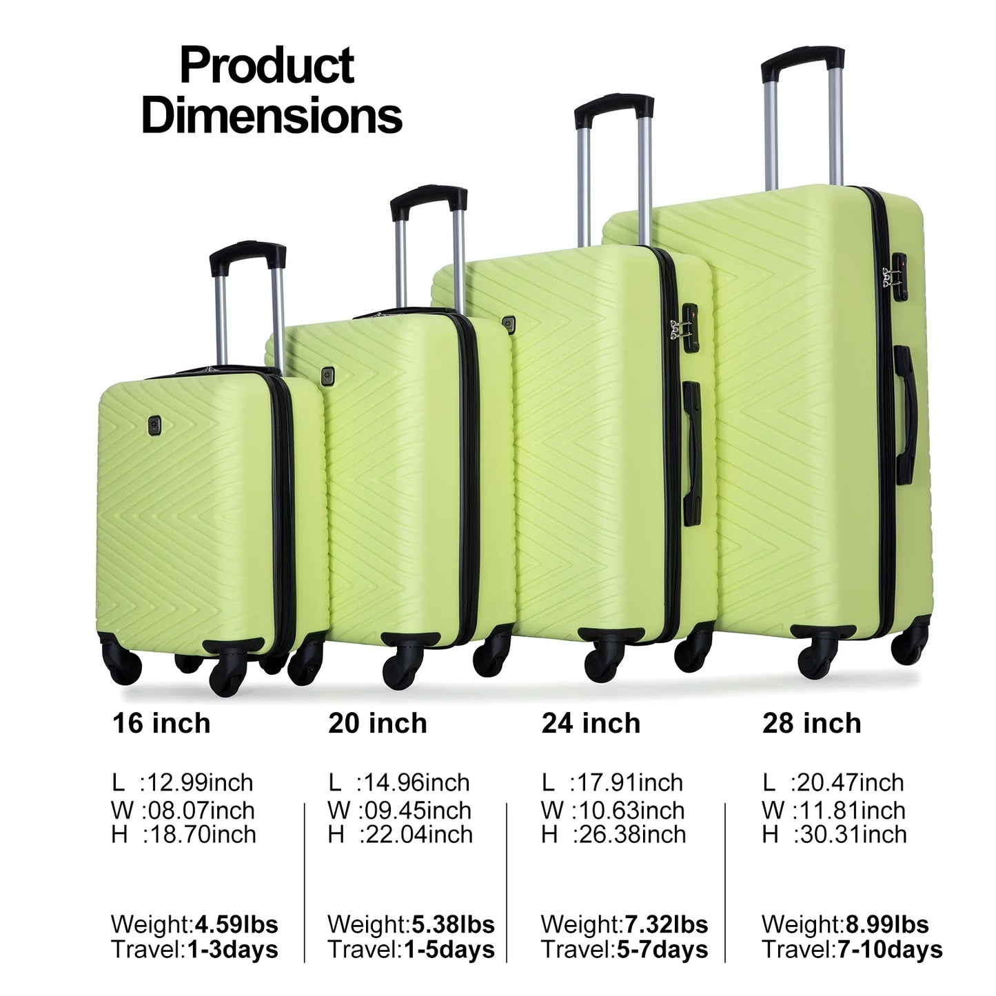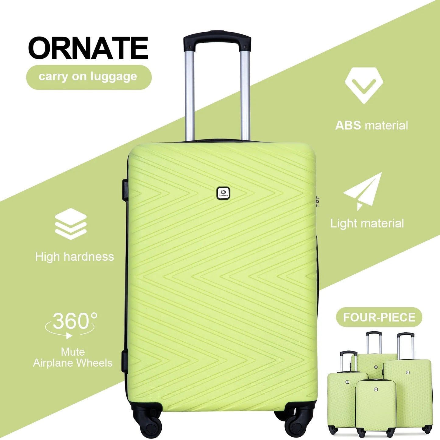 Travelhouse 4 Piece Hardshell Luggage Set Hardside Lightweight Suitcase with TSA Lock Spinner Wheels.(light Green)