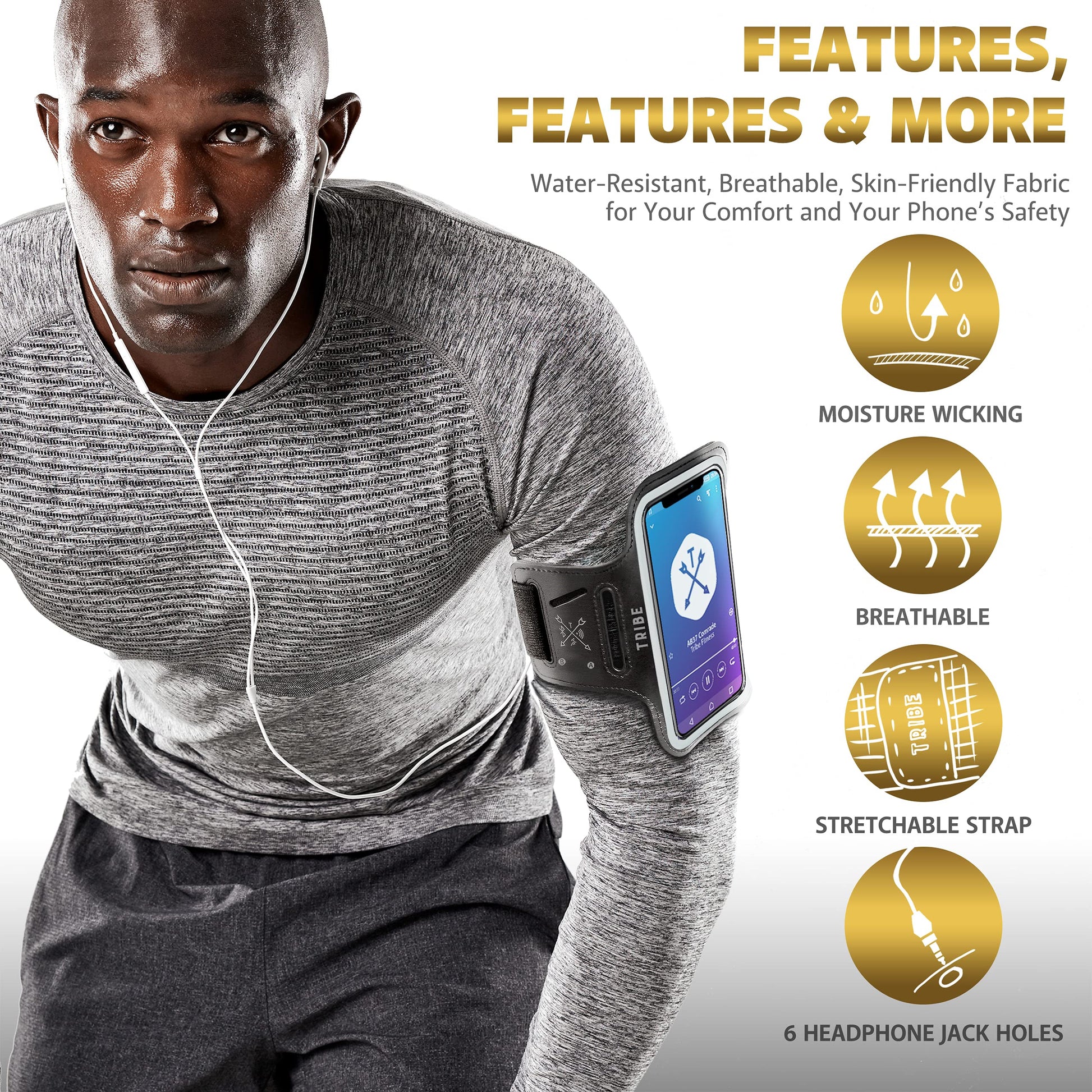 TRIBE Water Resistant Cell Phone Armband Case Running Holder for iPhone Pro Max Plus Mini SE (13/12/11/X/XS/XR/8/7/6/5) Galaxy S Ultra Plus Edge Note (21/20/10/9/8/7/6/5) Adjustable Strap & Key Pocket