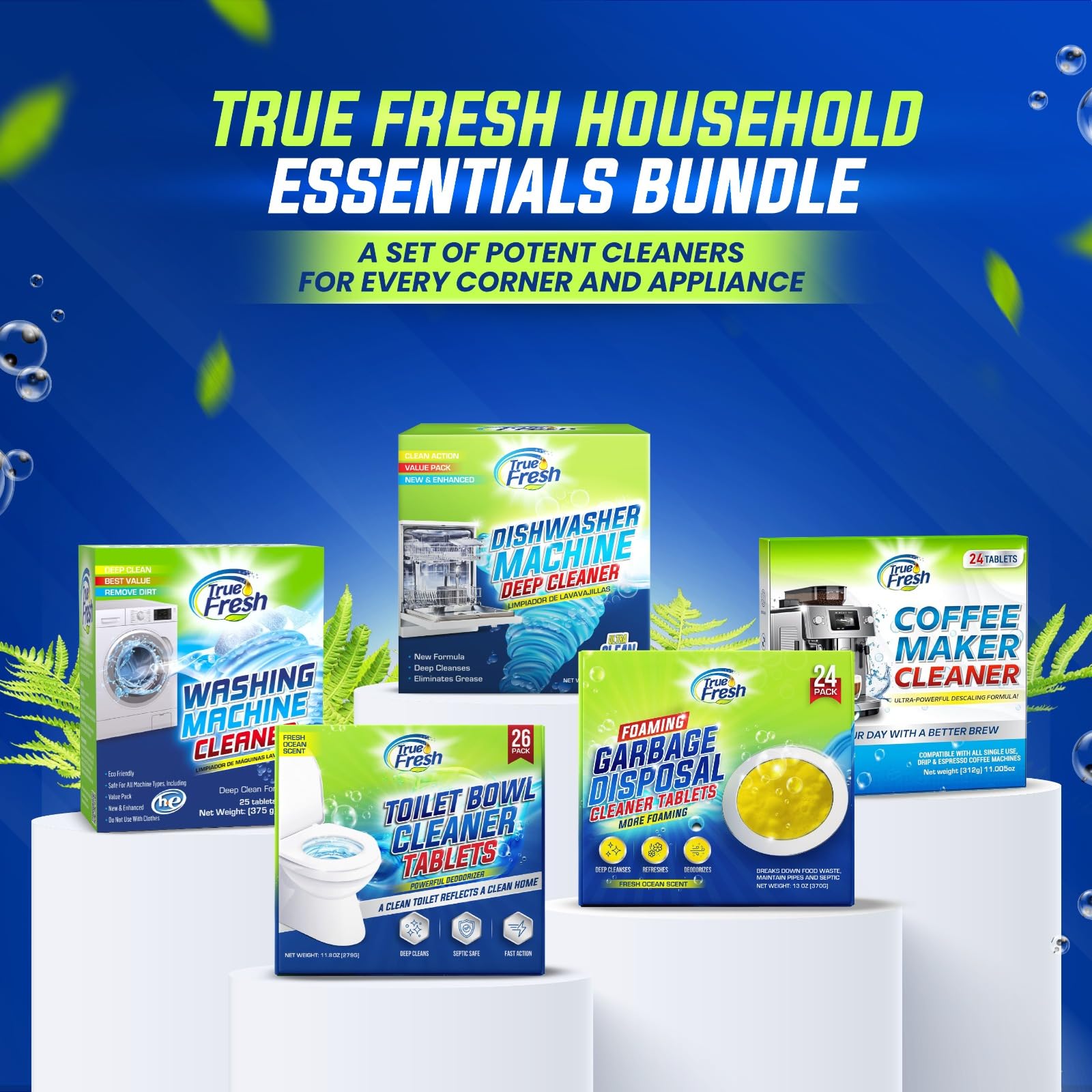 True Fresh Washing Machine Cleaner Tablets – 25-Pack Deep Cleaning for Front Loader, Top Load & HE Washers – Helps Remove Odor-Causing Residues, Pet Hair & Hard Water Buildup – Septic Safe