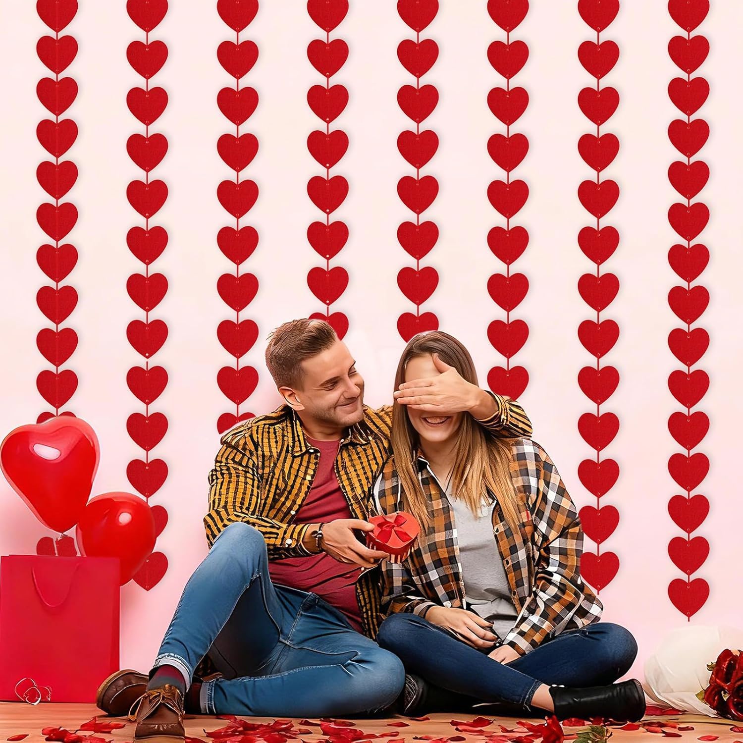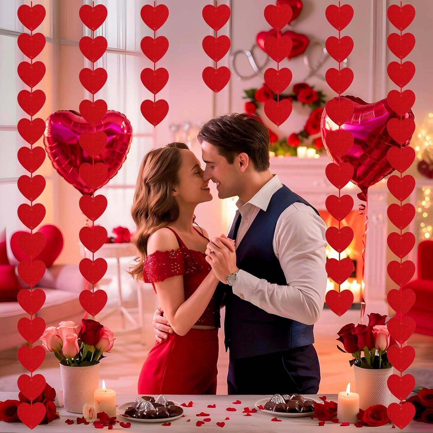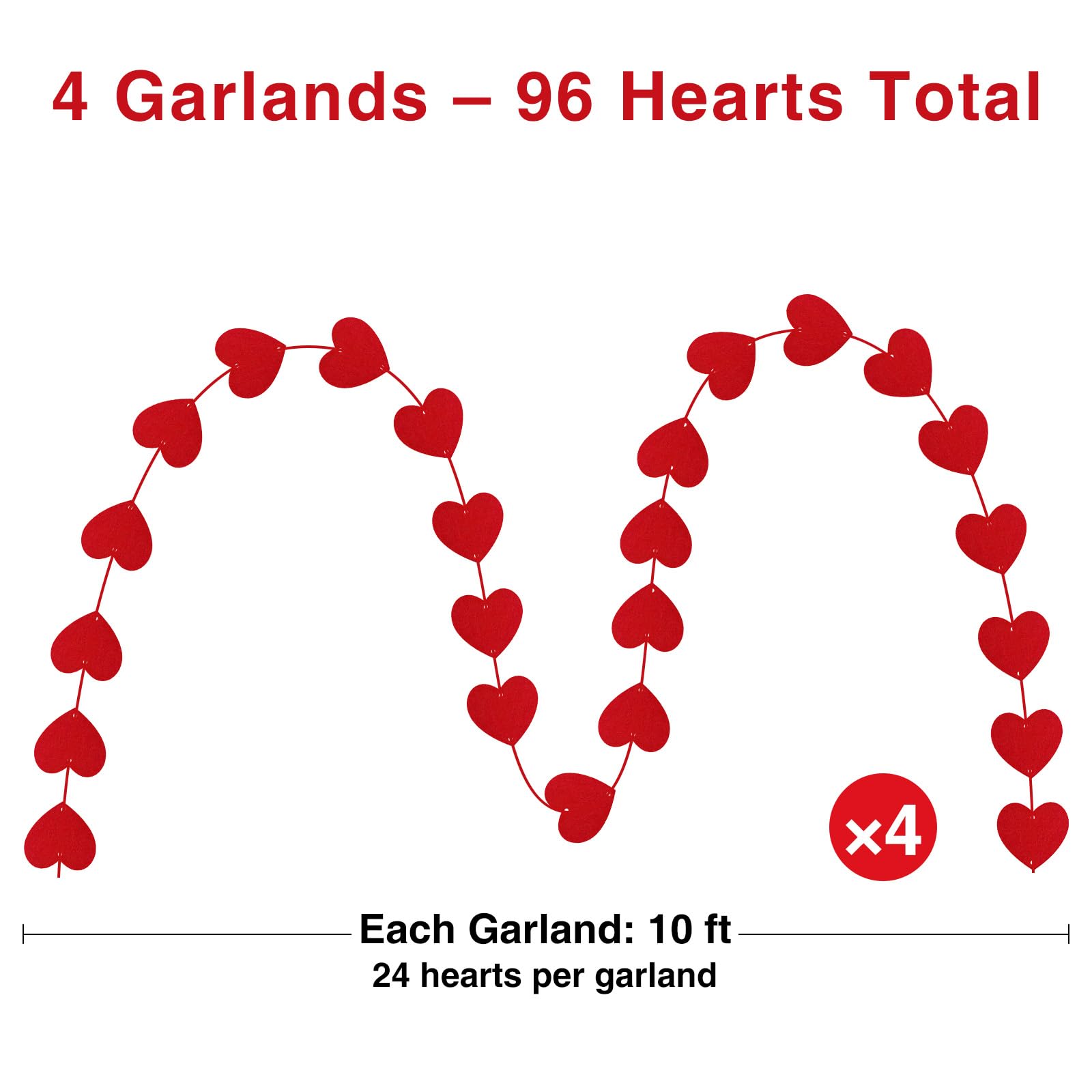 Valentines Day Decorations, 96 PCS Red Felt Heart Garland Hanging, Pre-Assembled Romantic Heart String Garland for Home, Wedding, Anniversary & Party Decor