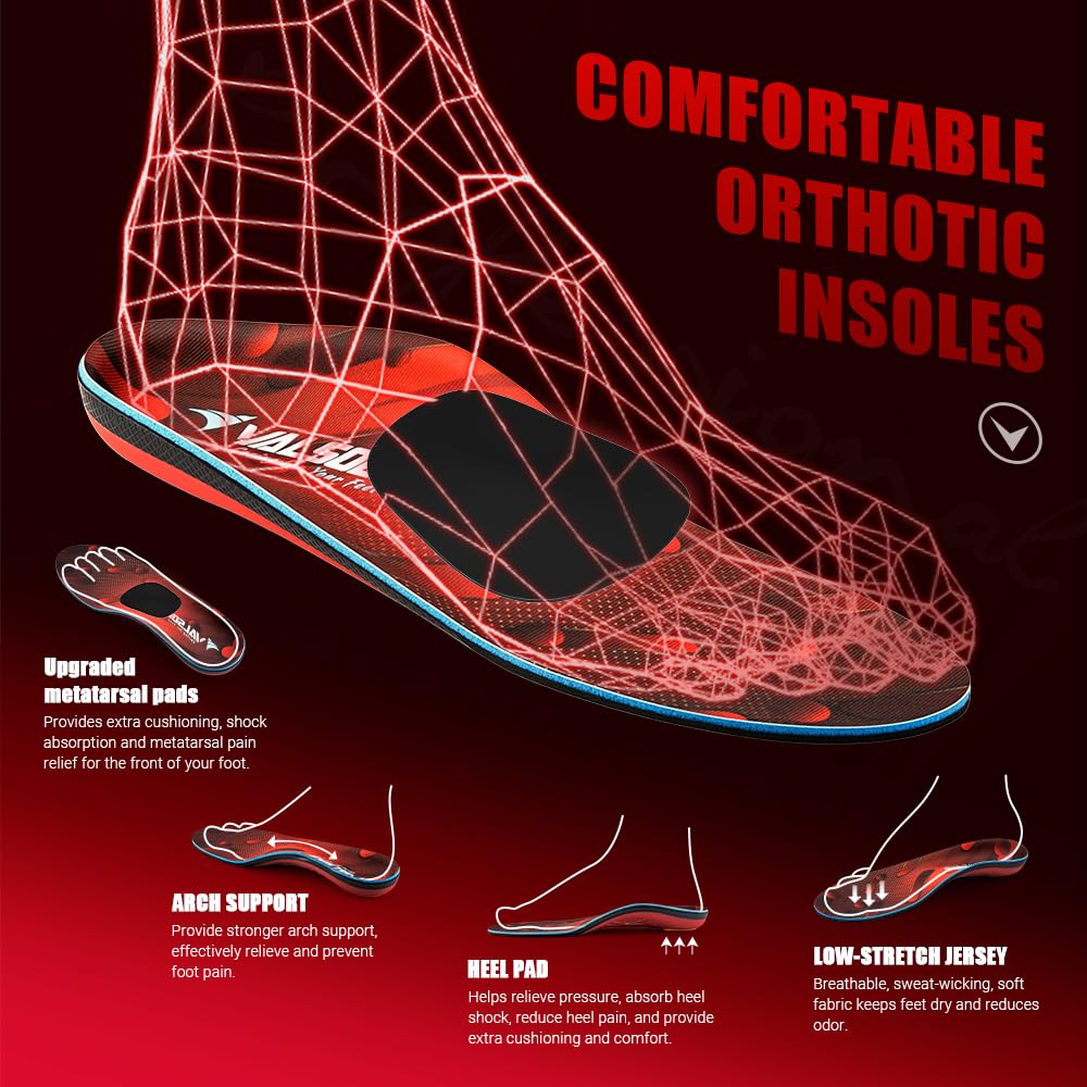 VALSOLE 250+ lbs Plantar Fasciitis High Arch Support Insole for Men Women,Heavy Duty Support Pain Relief Orthotics Insert,Relieve Flat Feet,High Arch,Foot Pain,Standing All Day Boot Work Shoe Insole