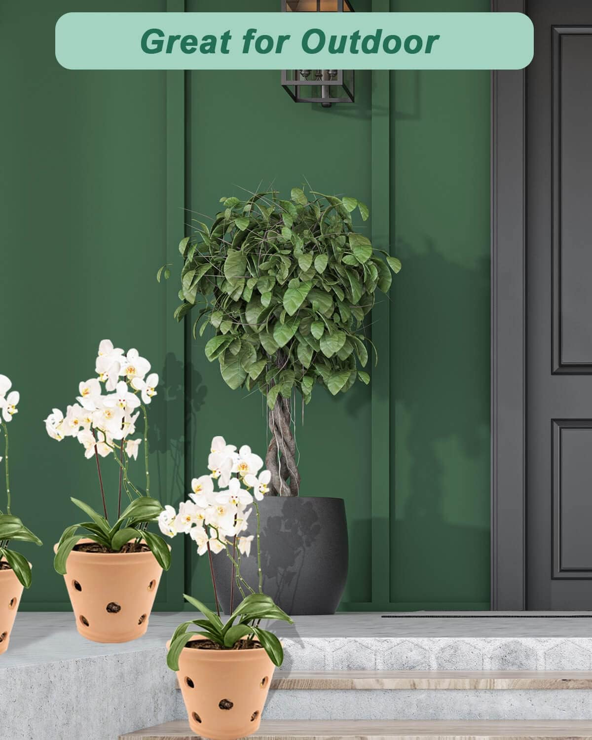 vensovo Terracotta Orchid Pots with Holes and Saucers - Clay Orchid Planter Pots for Repotting, Plant Flower Pots for Orchid Indoor and Outdoor Promotes Air Circulation