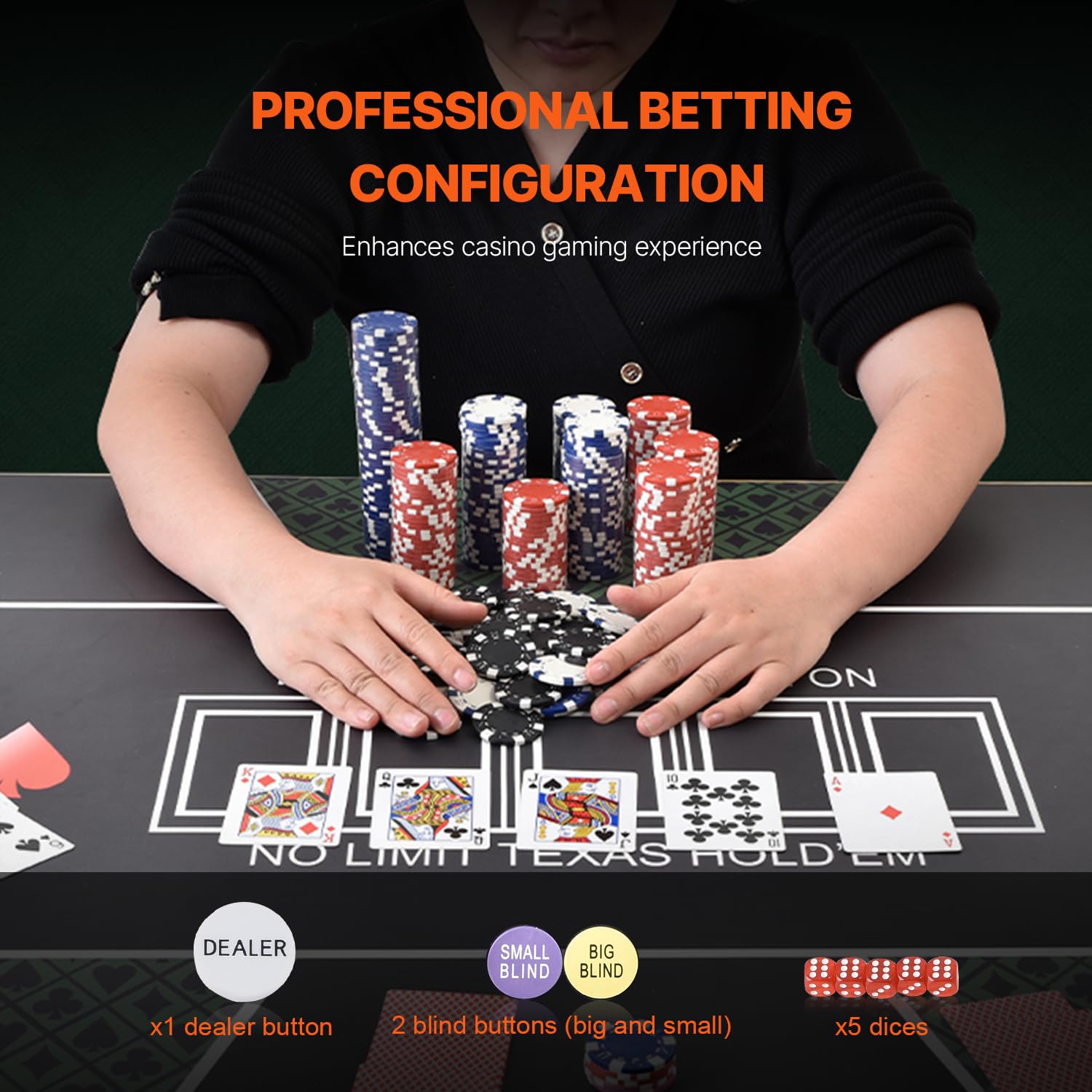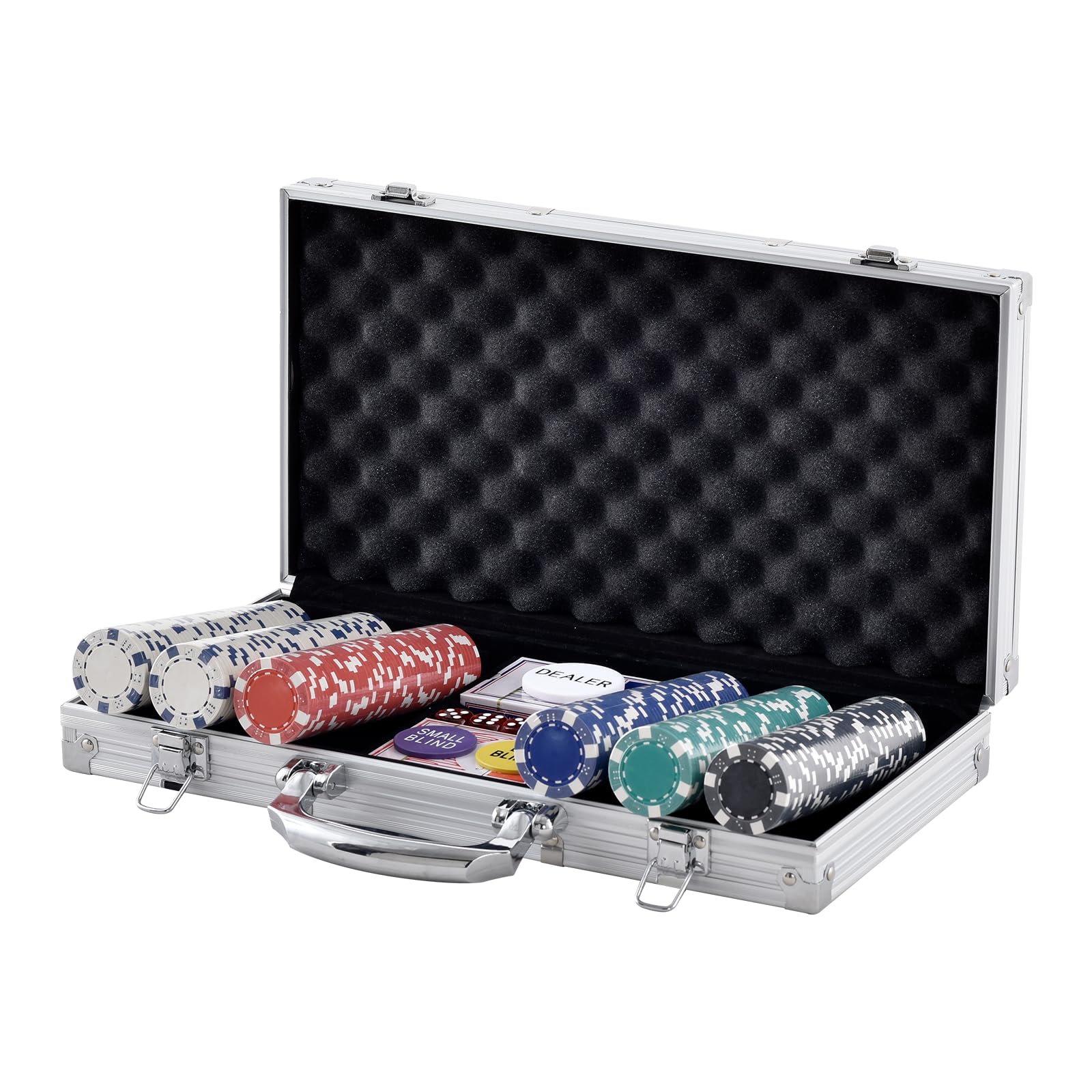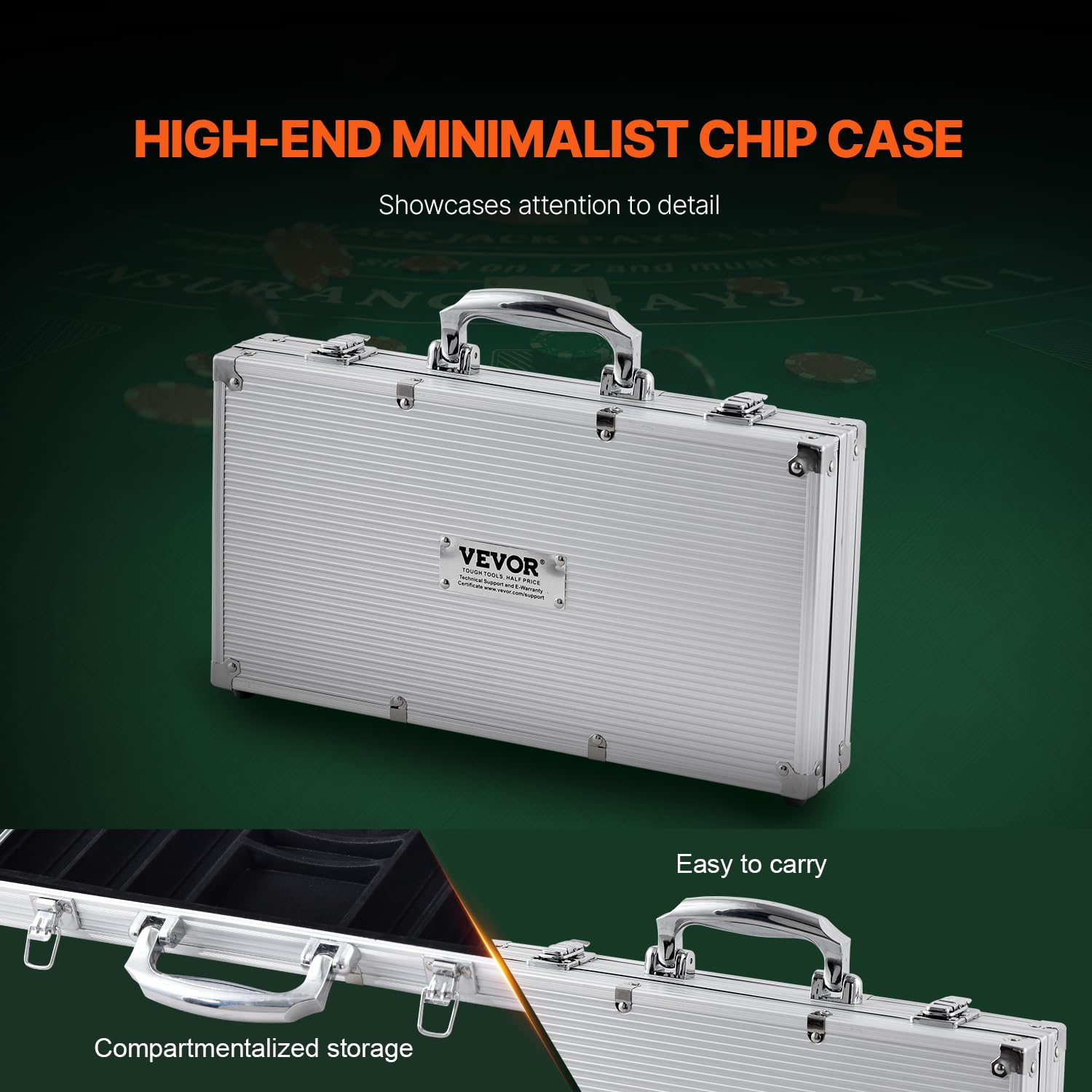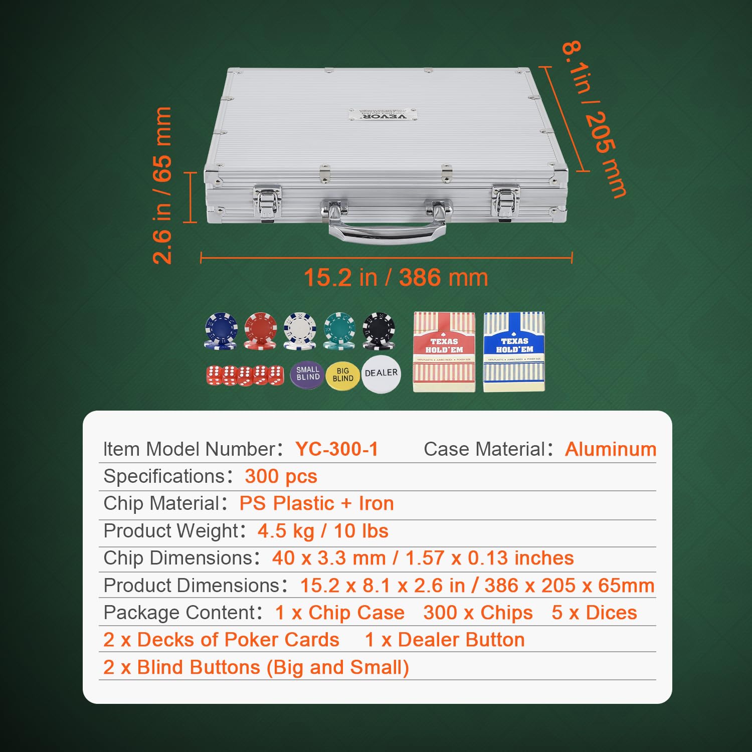 VEVOR Poker Set, 300-Piece Complete Poker Playing Game Set for Texas Hold'em, Blackjack, Gambling, Poker Chip Set with Aluminum Carrying Case, 11.5 Gram Casino Chips, Cards, Buttons and Dices