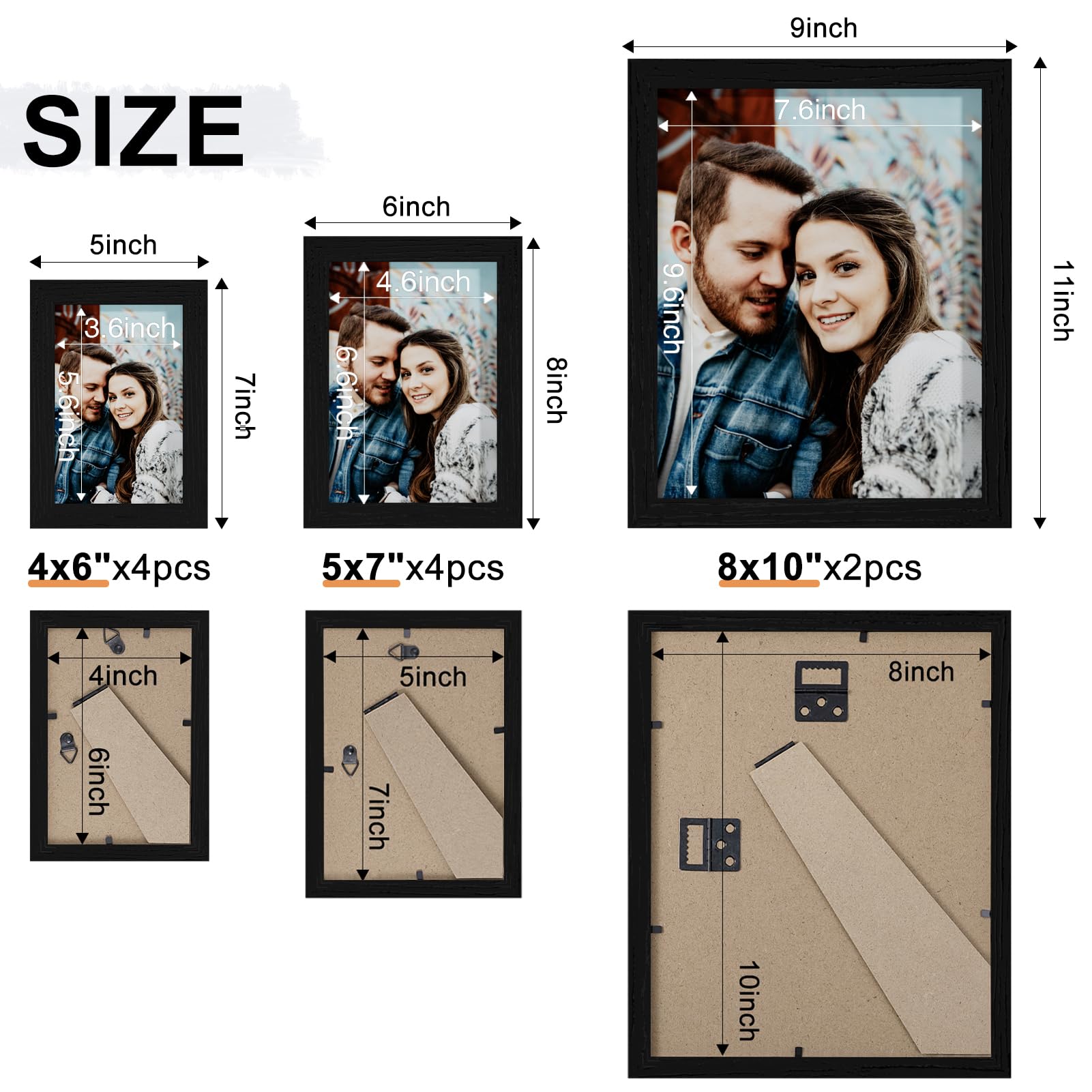 Vittanly 10 Pack Picture Frames Collage Wall Decor, Gallery Frame Set for Wall Mounting or Tabletop Display, Multi Sizes Including 2pcs 8x10, 4pcs 5x7, 4pcs 4x6, Black