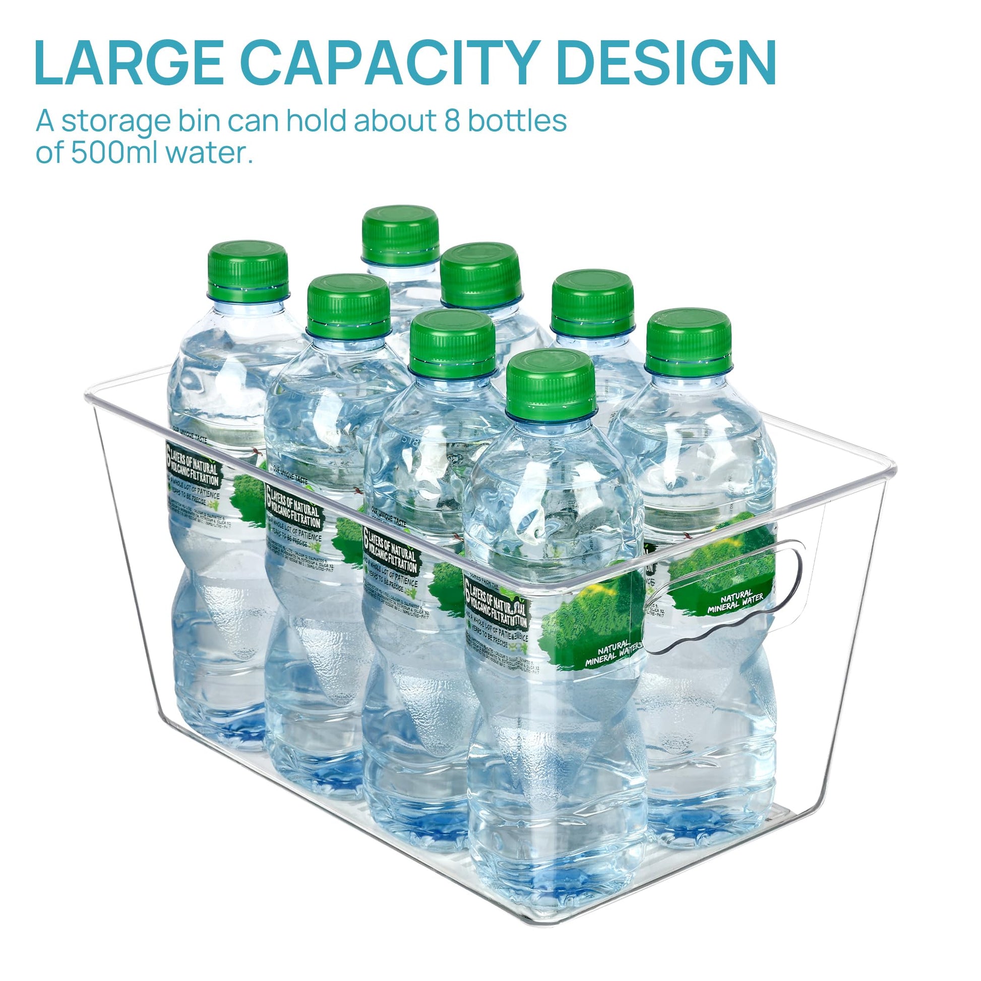 Vtopmart Clear Plastic Pantry Organizer Bins, 4 PCS Food Storage Bins with Handle for Refrigerator, Fridge, Cabinet, Kitchen, Countertops, Cupboard, Freezer Organization and Storage, BPA Free, Large