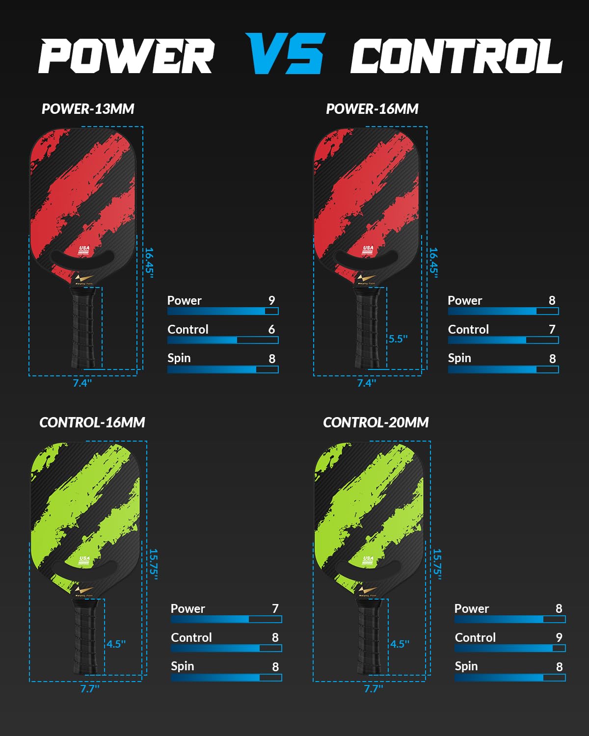 Warping Point Carbon Fiber Pickleball Paddle with Aero Throat, USAPA Approved Thermoformed Pickle Ball Rackets for Power & Spin, 16mm Polypropylene Honeycomb Core, Textured Carbon Grit Surface, Red
