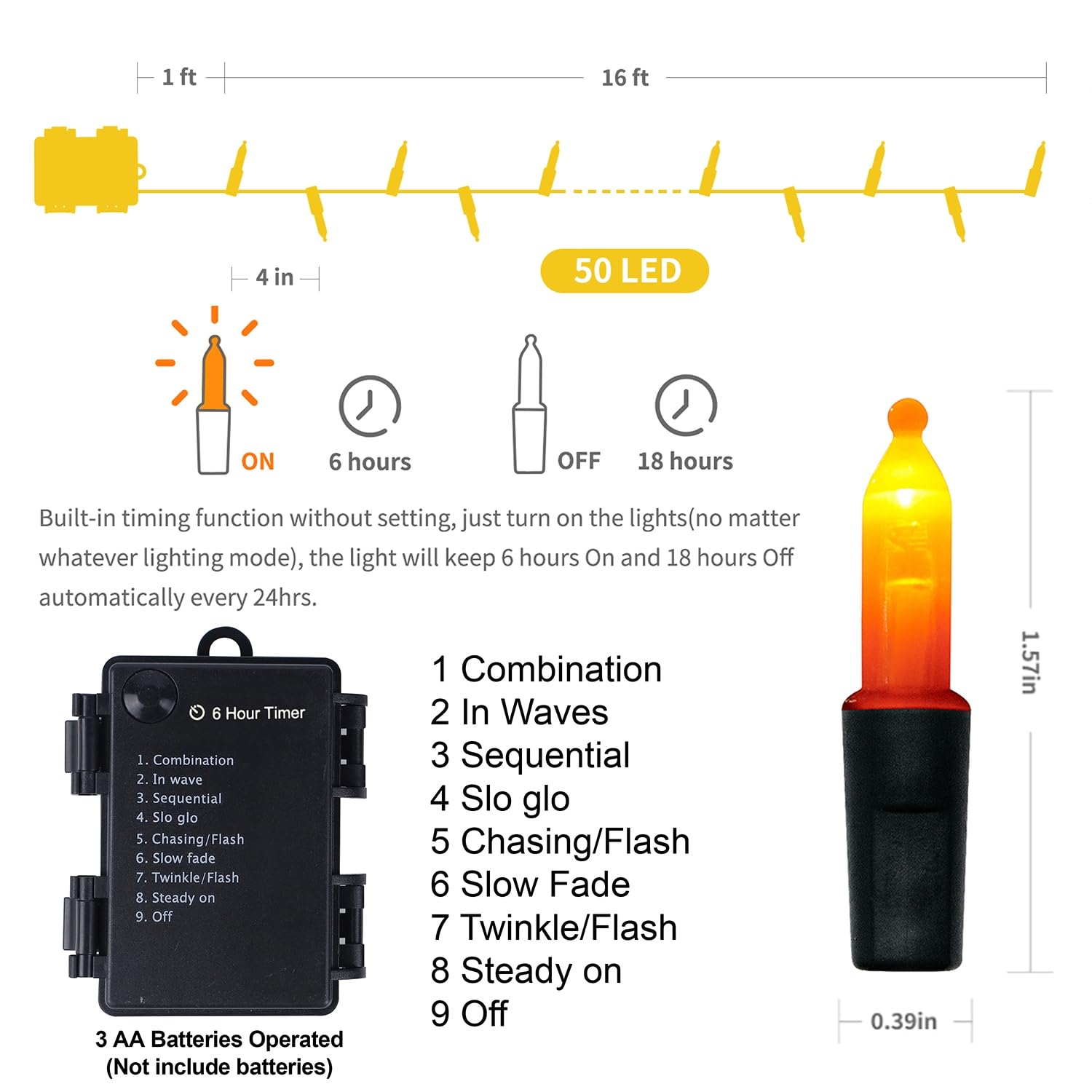 WATERGLIDE 2 Pack 50 LED Outdoor Halloween Lights, 16 FT Mini String Light with 8 Modes, Waterproof Battery Operated Tree Lights for Indoor Outdoor Patio Garden Party Decoration, Orange & Purple