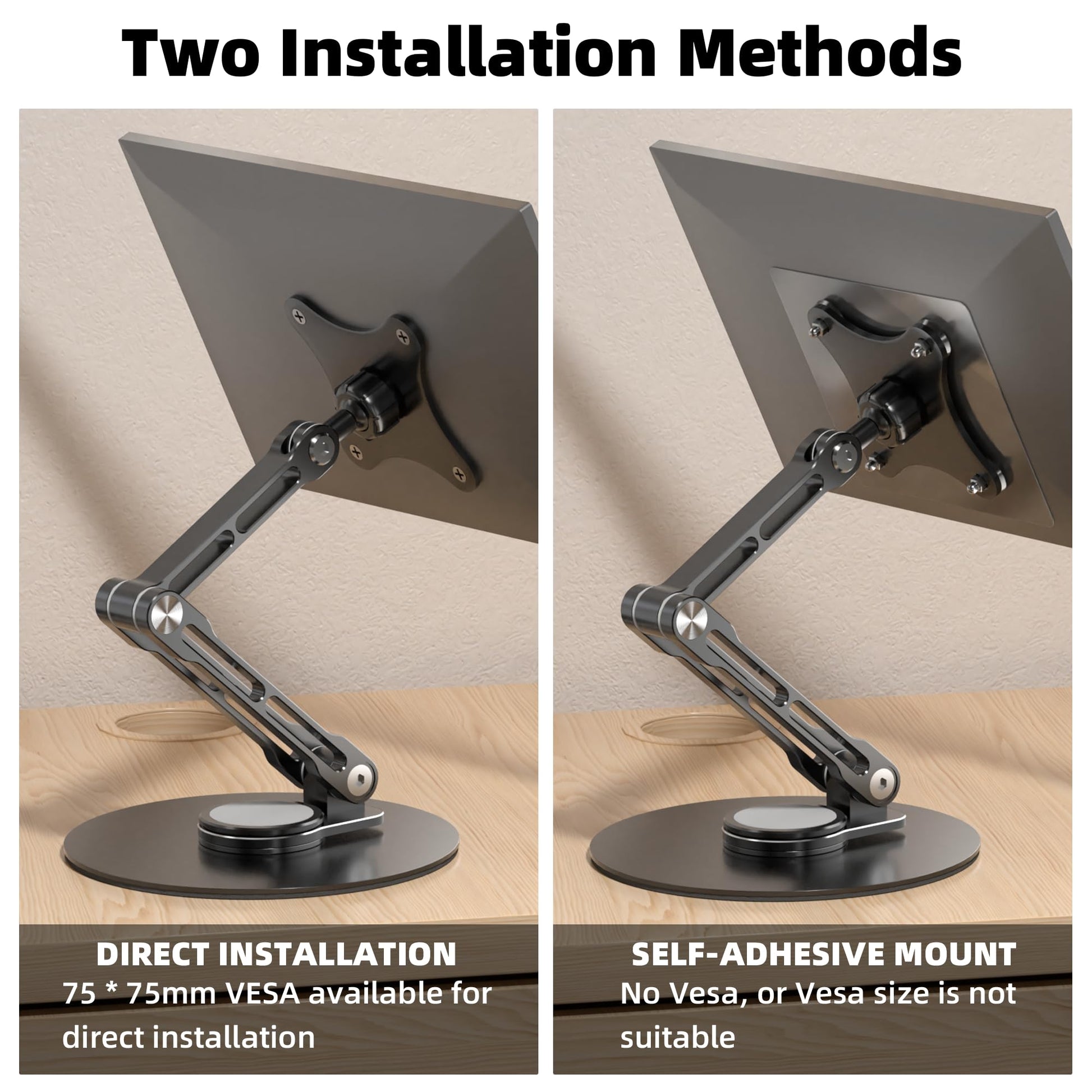 WEARSON 75mm VESA Mount Monitor Stand - Foldable Small Monitor Stand for 10" 13" 15.6" 16" 17" 17.3" inch Portable Monitor Stand Lay Flat support VESA 75*75mm (Black)