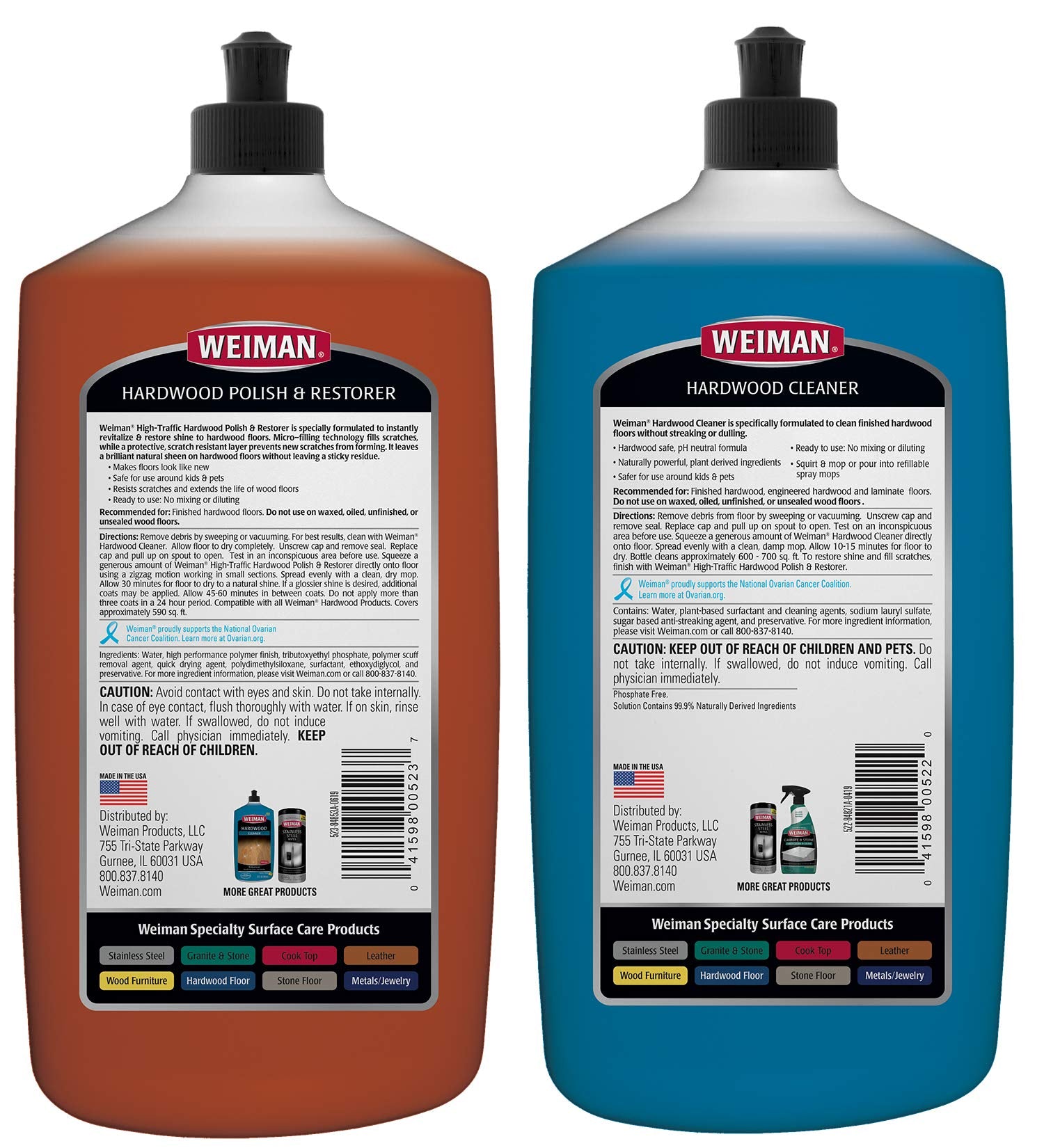Weiman Hardwood Floor Cleaner and Polish Restorer Combo - 2 Pack - High-Traffic Hardwood Floor, Natural Shine, Removes Scratches, Leaves Protective Layer