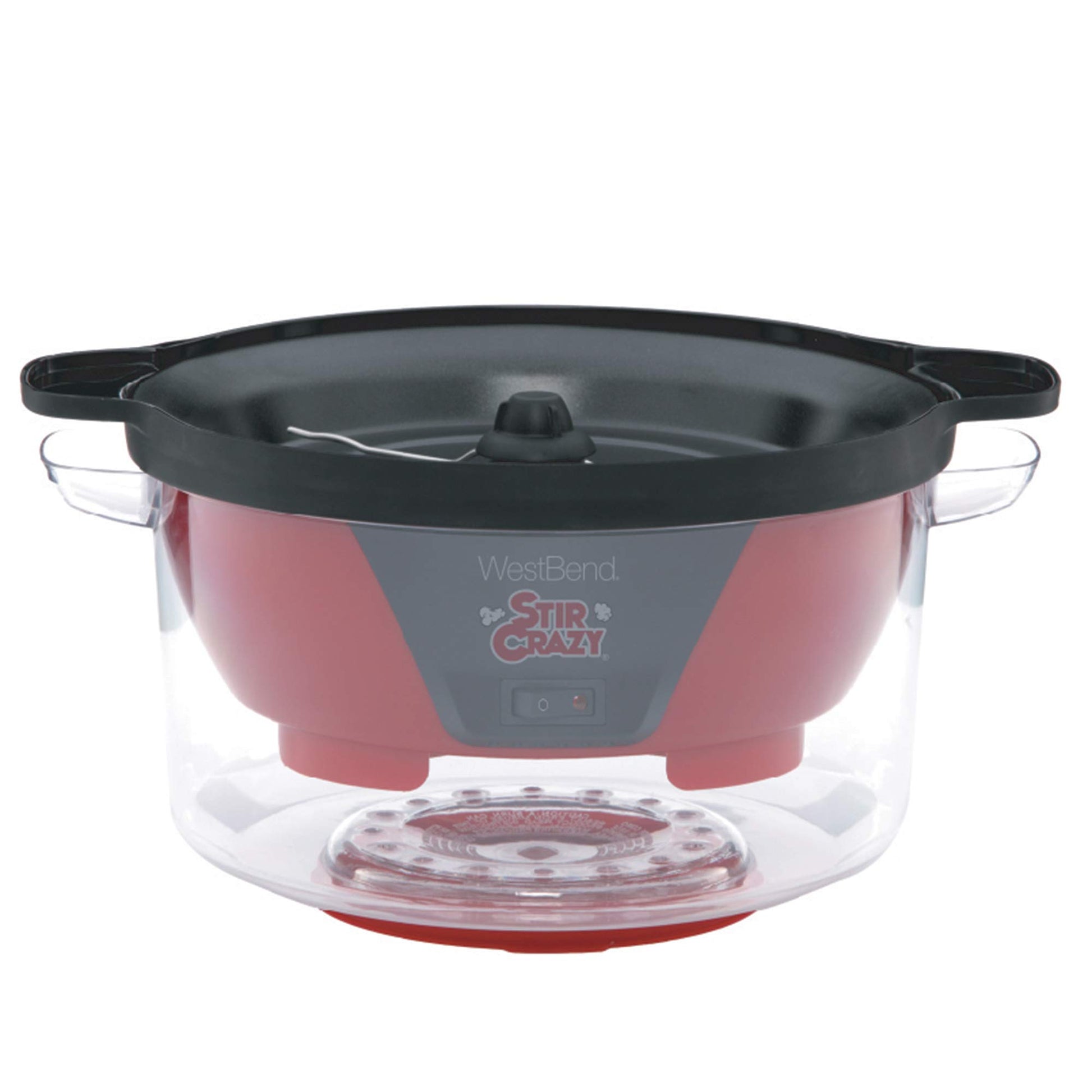 West Bend Stir Crazy Popcorn Machine Electric Hot Oil Popper Includes Large Lid for Serving Bowl and Convenient Nesting Storage, 6-Quart, Red