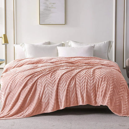 Whale Flotilla Flannel Fleece Twin Size(90x66 Inch) Lightweight Bed Blanket, Soft Velvet Bedspread Plush Fluffy Coverlet Chevron Design Decorative Blanket for All Seasons, Pink