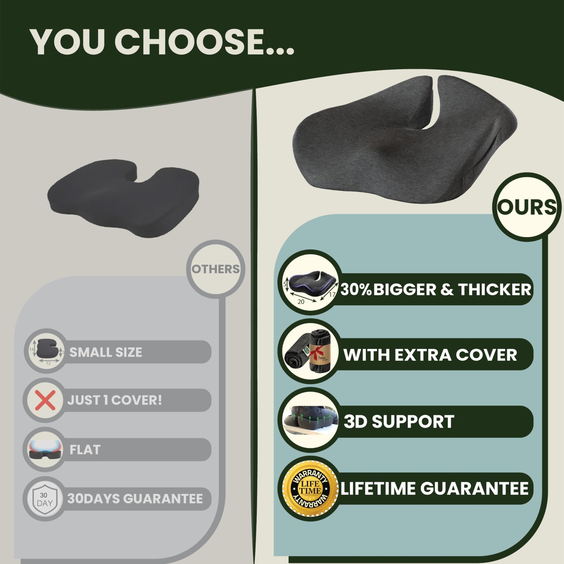 X Large Seat Cushions for Office Chairs– Pressure Relief Seat Cushion for Tailbone Pain, Back Pain, Coccyx & Sciatica Pain Relief Pillow – Office Chair Cushion with Extra Cover(Gray)
