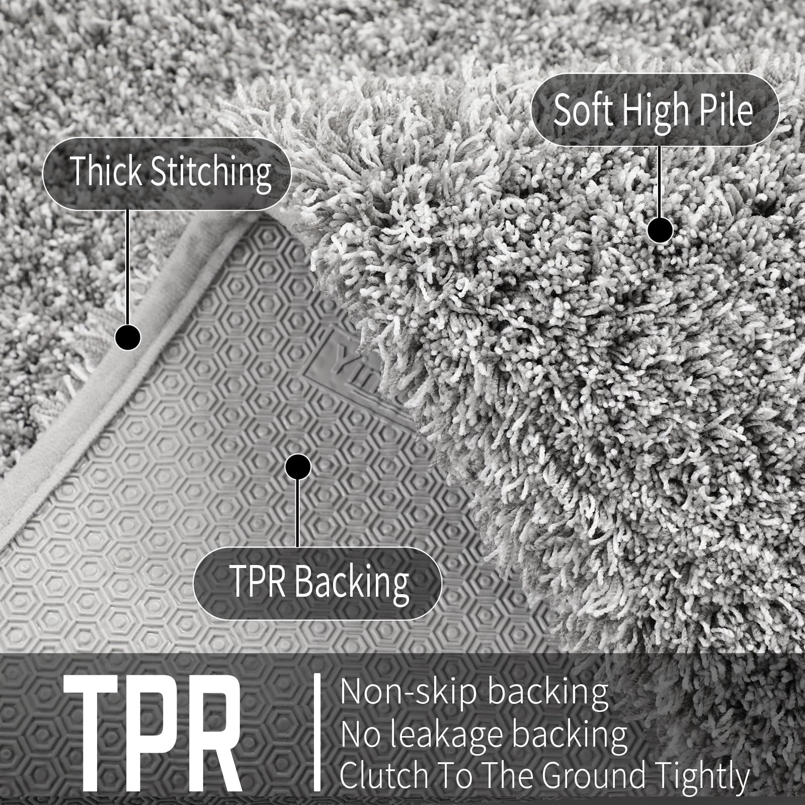 Yimobra Bathroom Rugs Non Slip Washable 32x20, Ultra Soft and Water Absorbent Bath Mats, Plush Fluffy Shower Mat Outside, Microfiber Thick Matts for Bathroom Floor/Tub, Light Gray and White