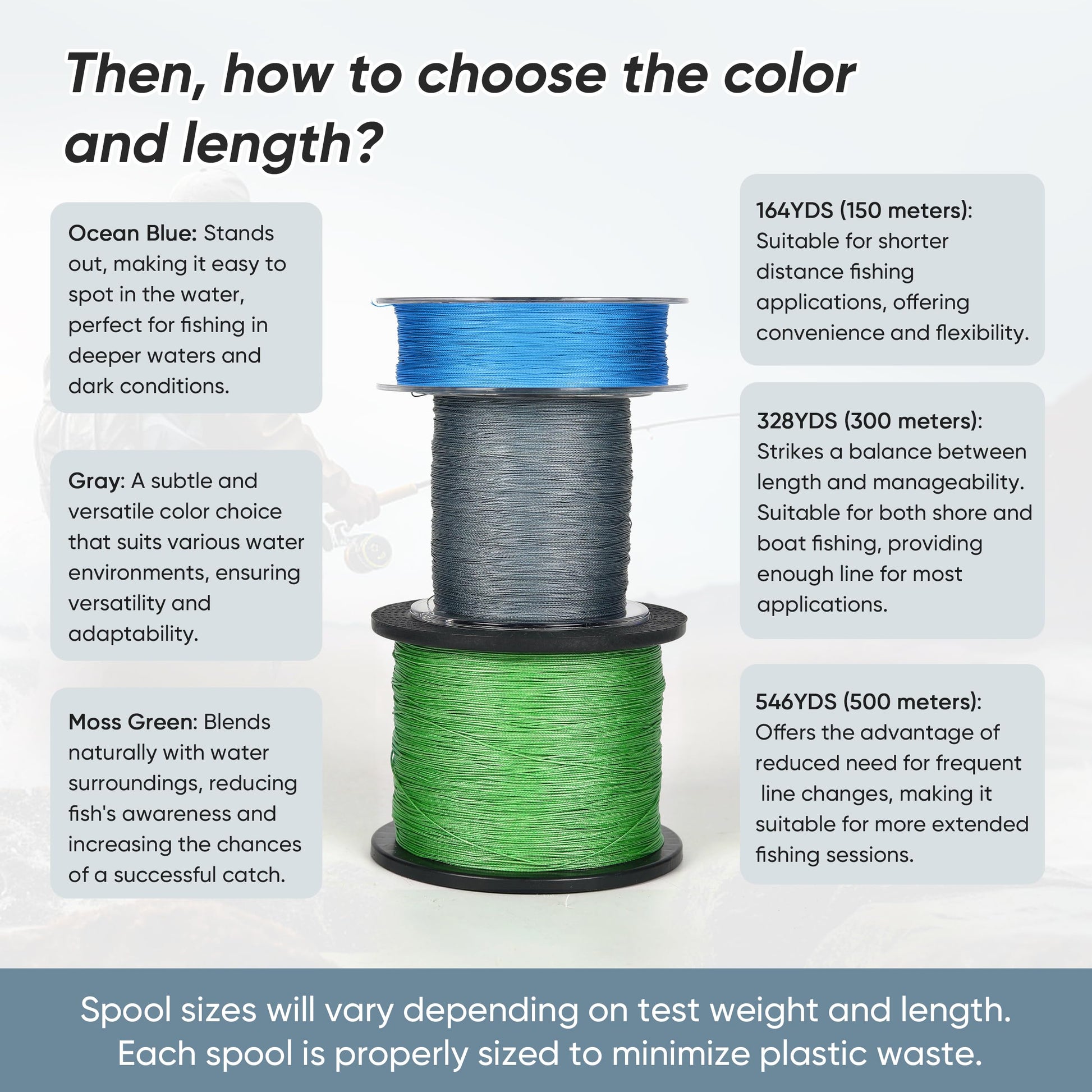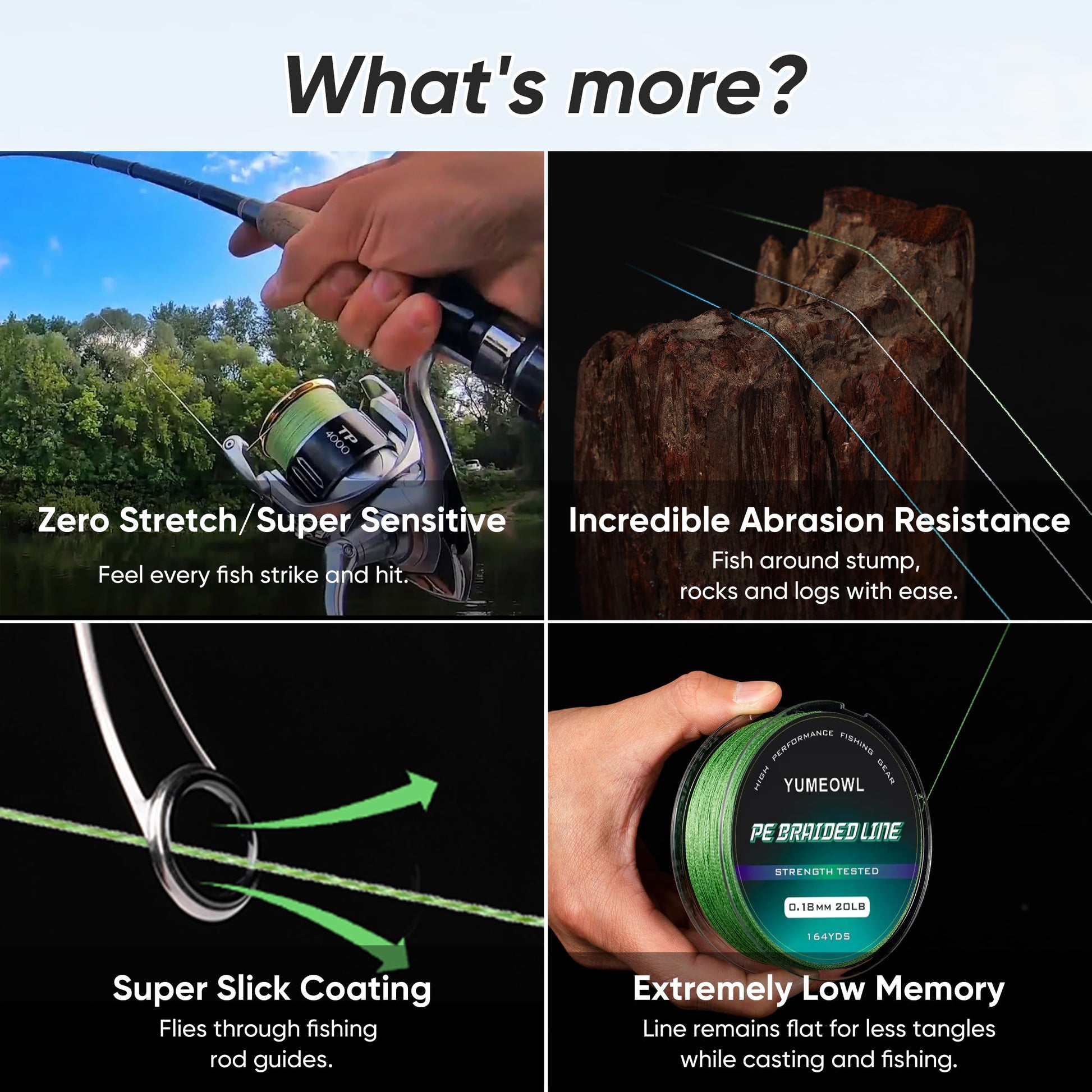 YUMEOWL Fishing Line, No Stretch-Super Strong-Abrasion Resistant-Braided Line, 4 Strand, Ocean Blue, 164YDS, 4LB, 0.05MM