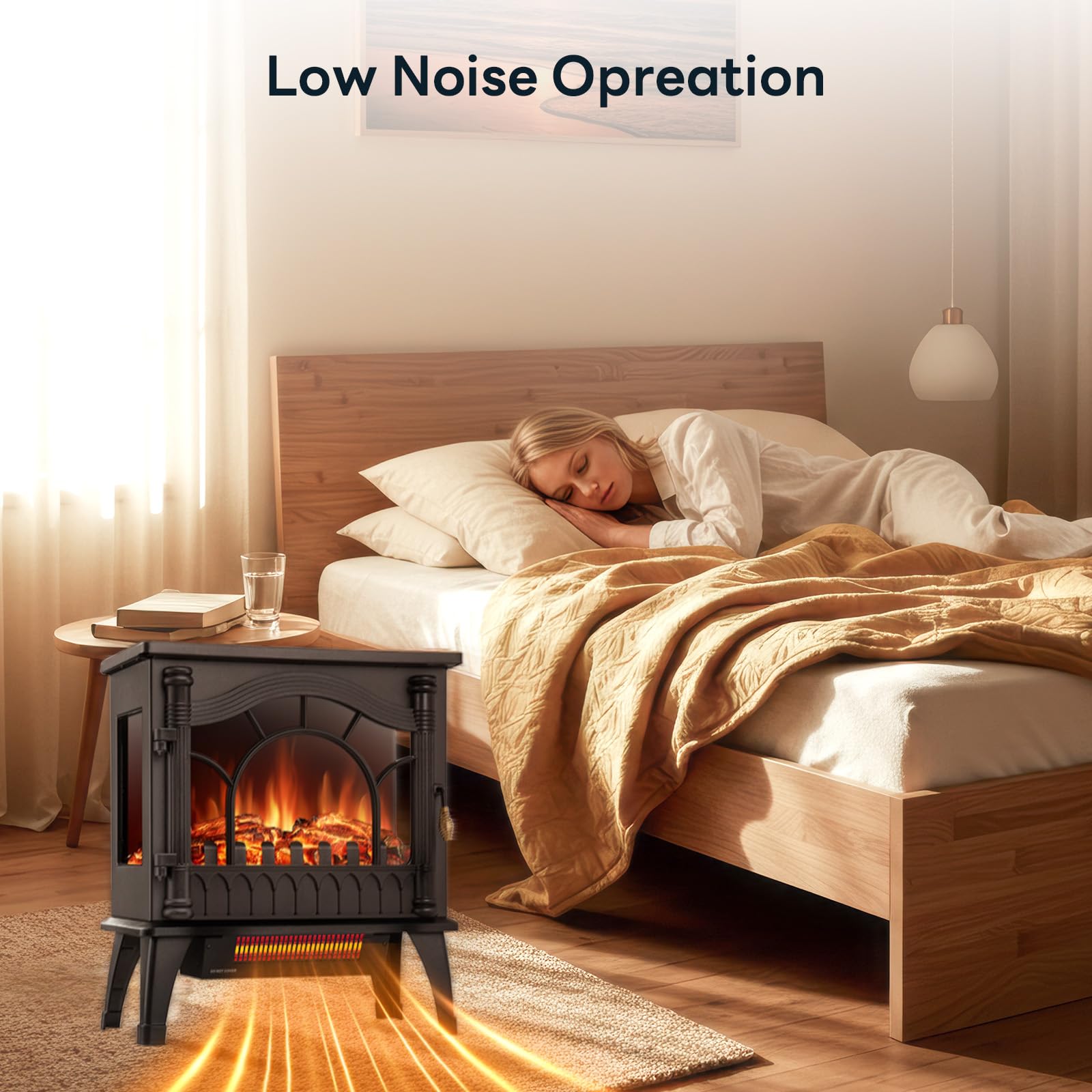 ZAFRO Freestanding Electric Fireplace Stove with Realistic Flame, 5100 BTU Electric Fireplace Heater with Retro Design, 1000W/1500W, Dual Safety Protection for Living Room, Bedroom