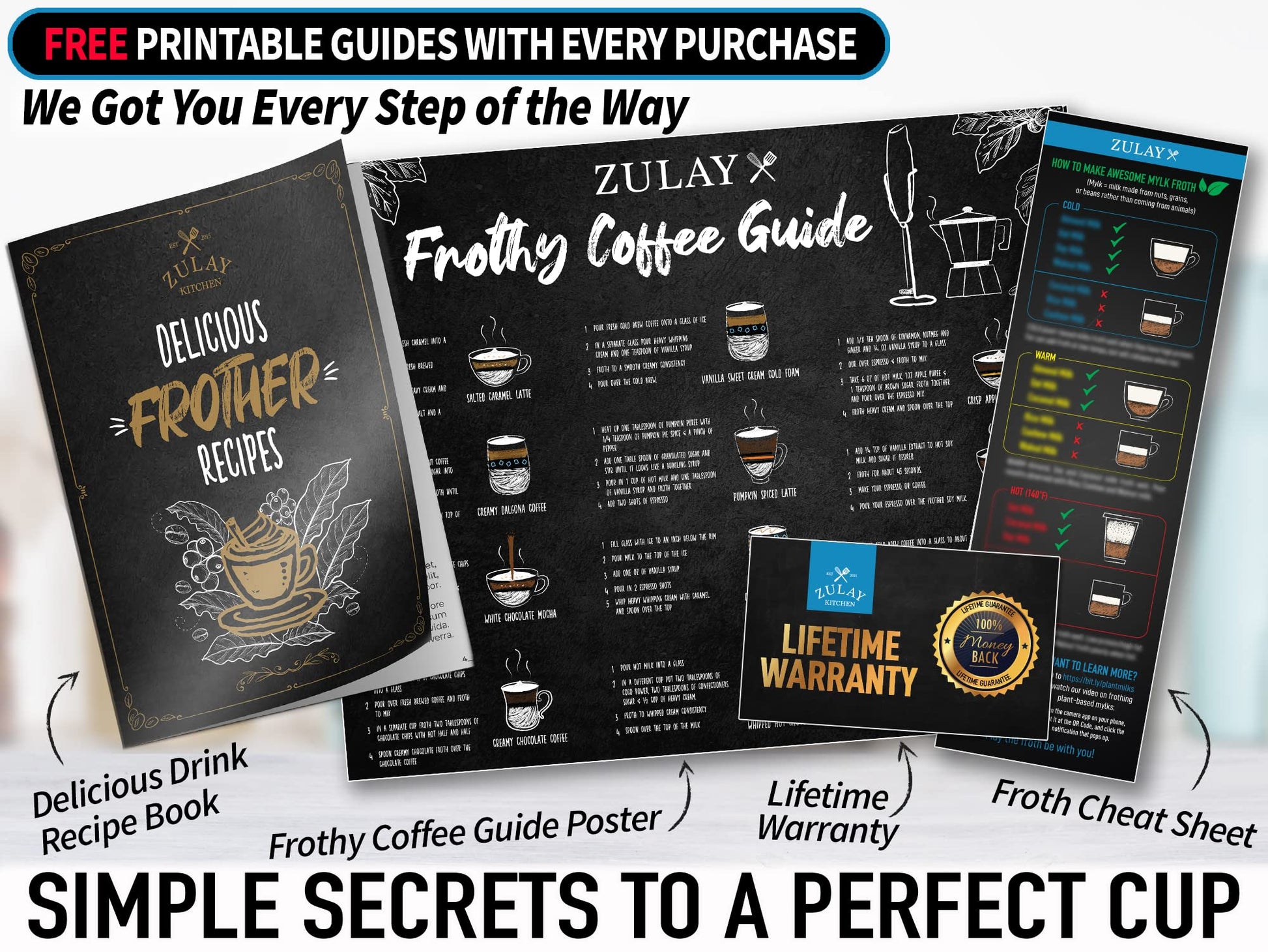 Zulay Kitchen Powerful Milk Frother Wand With 2 Duracell Batteries - Ultra Fast Handheld Drink Mixer - Electric Whisk Foam Maker for Coffee, Lattes, Cappuccino, Matcha, Hot Chocolate & Creamer - Black